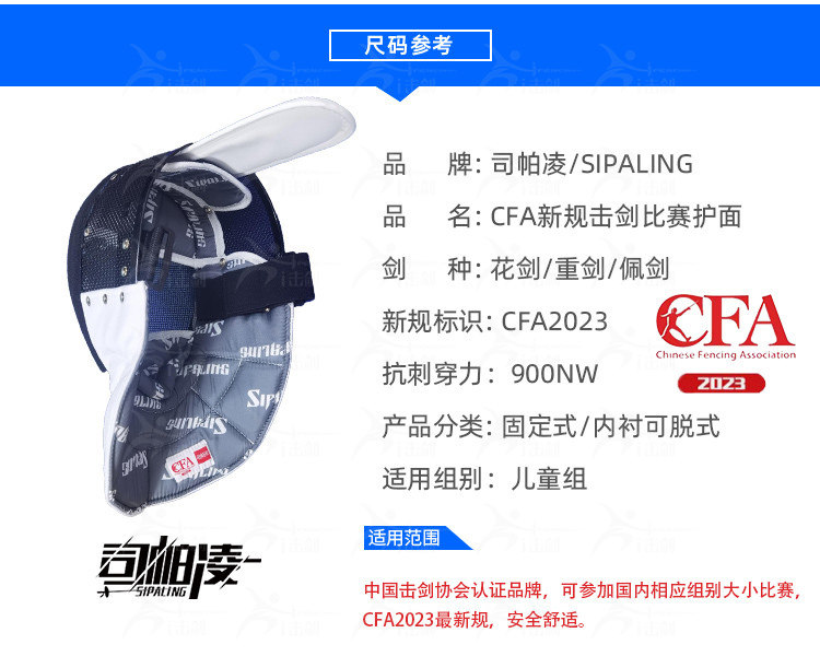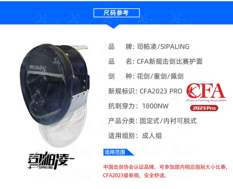 司帕凌 Конкурс ограждения защитный лицо CFA2023 Новые правила Фольга Маска CFA900N Тяжелый меч CFA1800N Защитное лицо