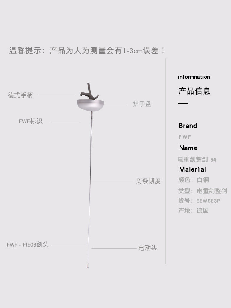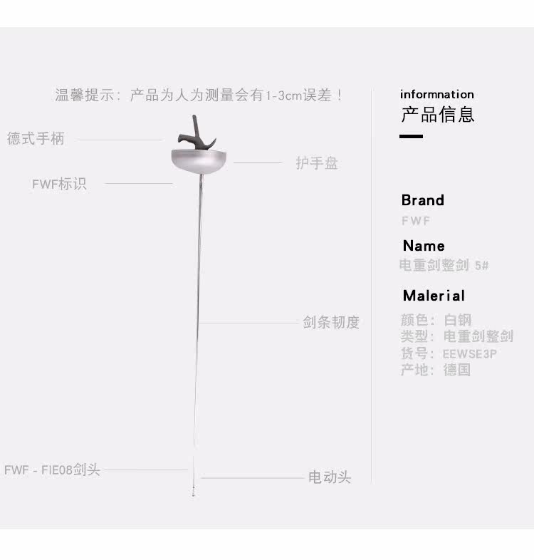 FWF Германия импортированный электрический меч, полный меч, сертифицированный FIE Steel White Steel Bf Mara Gold Steel Furcing Equipment № 5