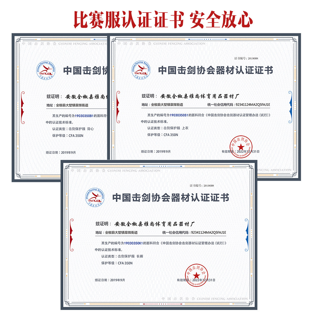[CFA2023新规认证冰丝击剑服 450N/900N儿童成人击剑保护服可比赛]