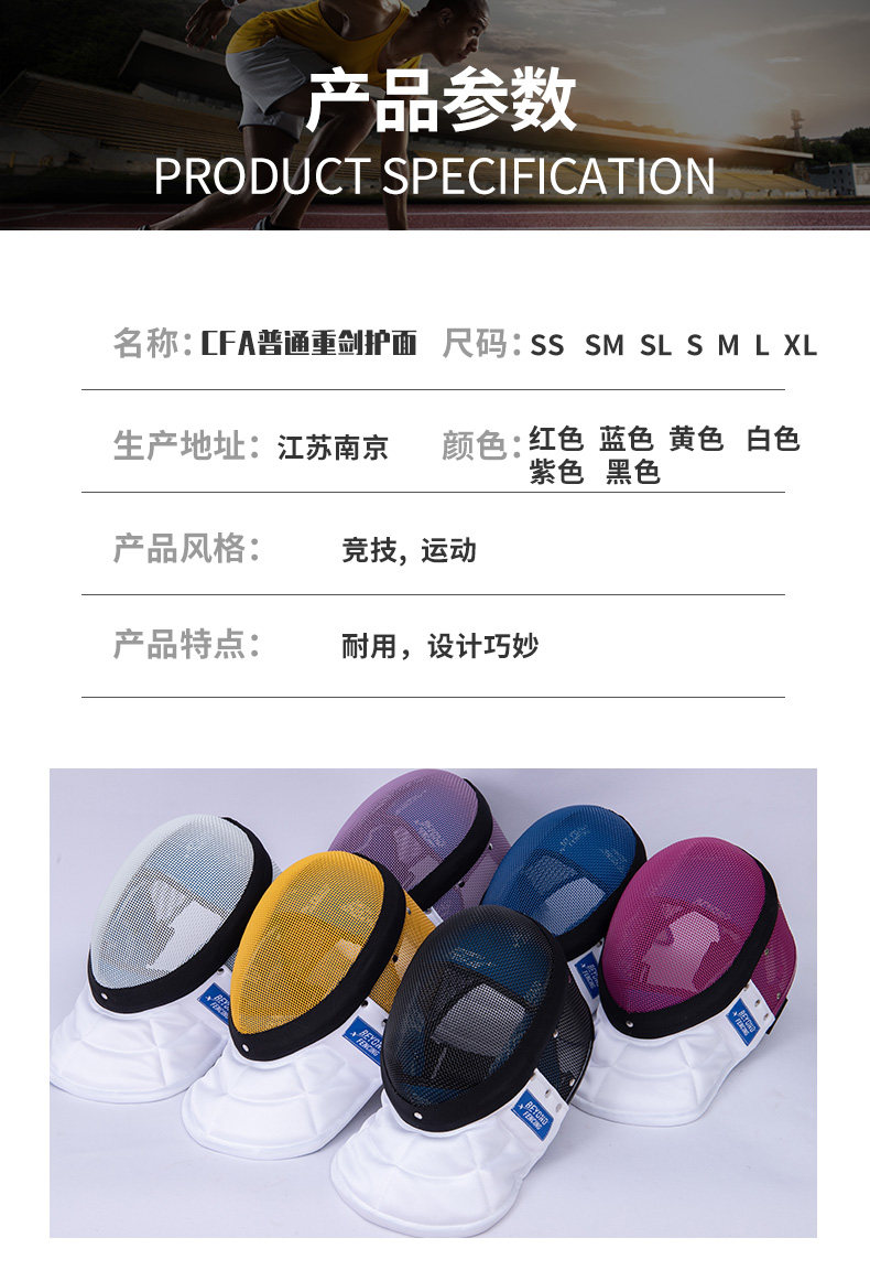 Помимо подлинного сертификации CFA 900N Тяжелая конкурс ткани для меча Новые правила двойная пряжка тяжелая маска для меча Цвет тяжелой головы меча