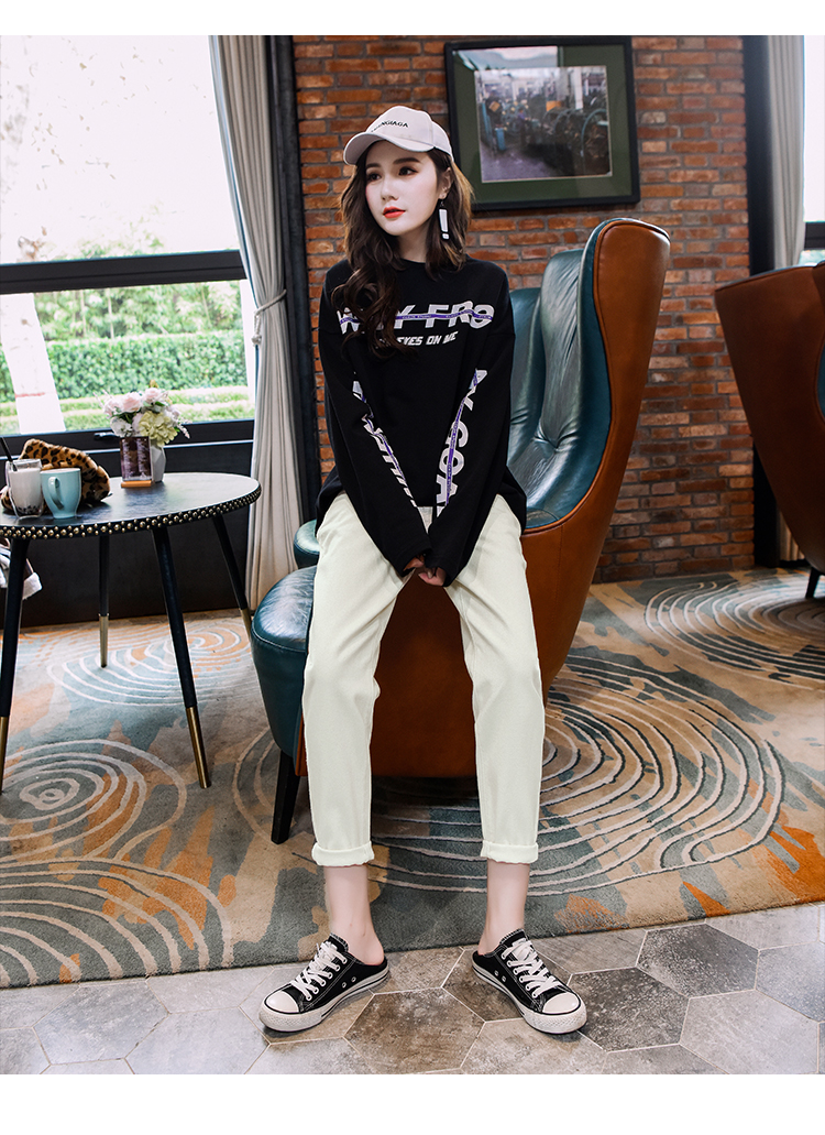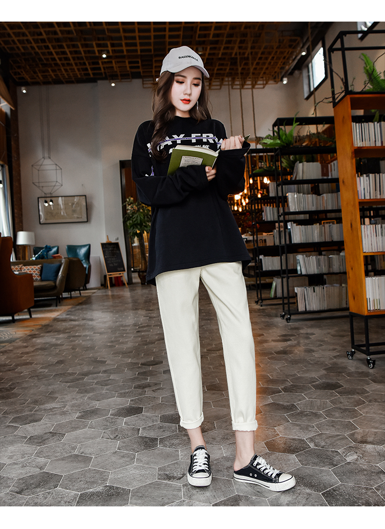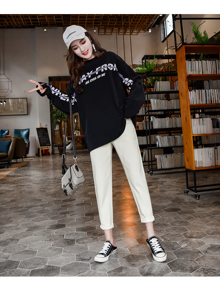 Осенние штаны, джинсы, белые леггинсы для отдыха, оверсайз, свободный прямой крой