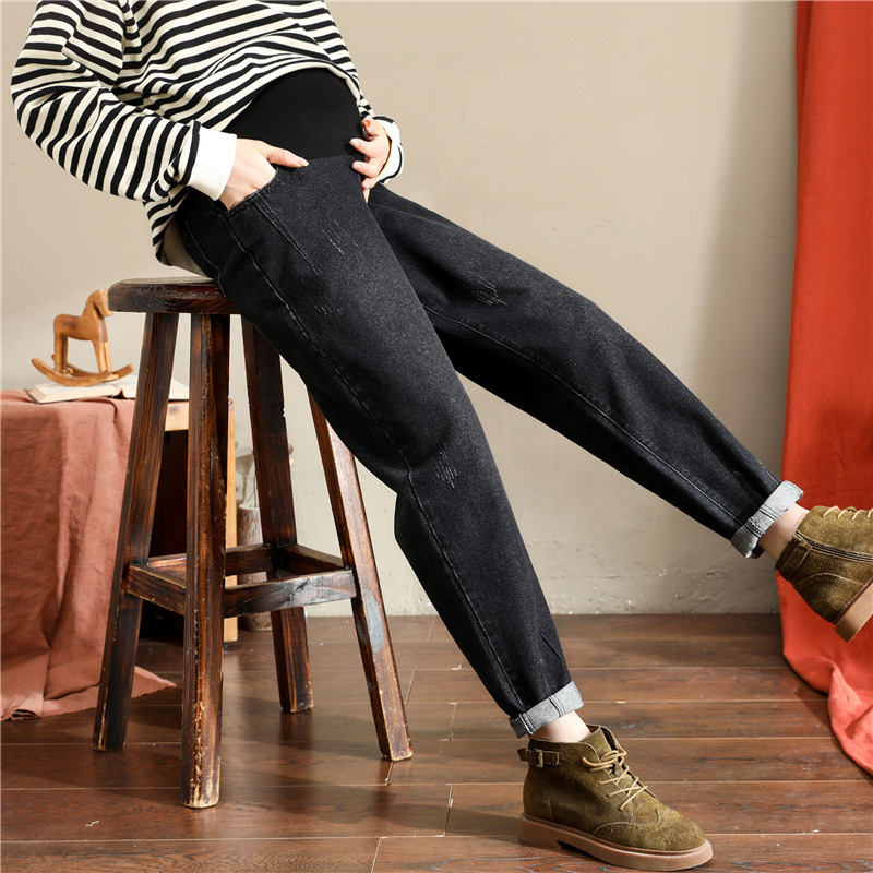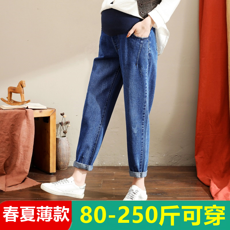 Хлопковые летние джинсы для беременных, осенние штаны, большой размер, свободный крой, оверсайз