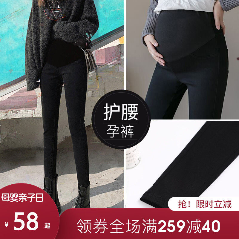 Штаны, леггинсы для беременных, черные тонкие осенние джинсы