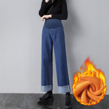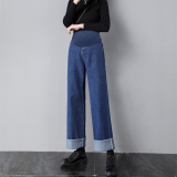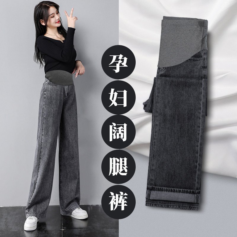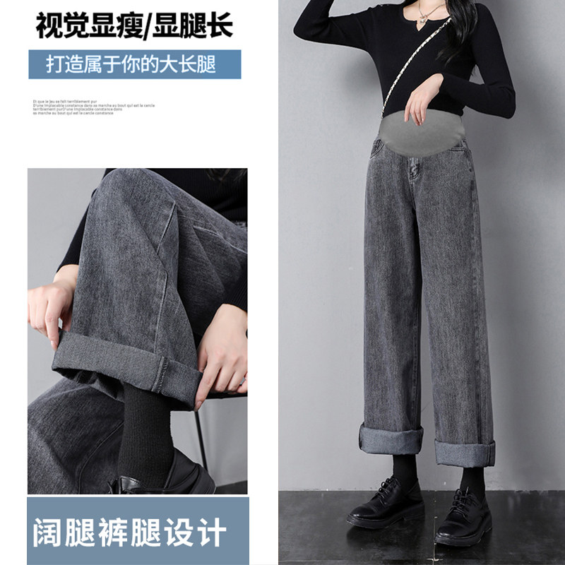 Джинсы для беременных, штаны, леггинсы, осенние, свободный прямой крой, большой размер