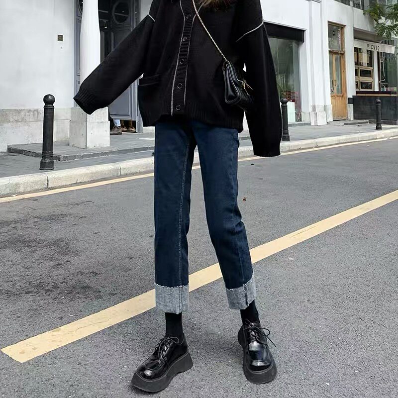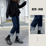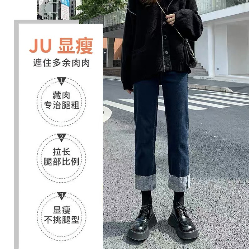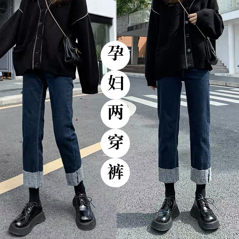 Штаны, базовые джинсы для беременных, свободный прямой крой, осенние, большой размер