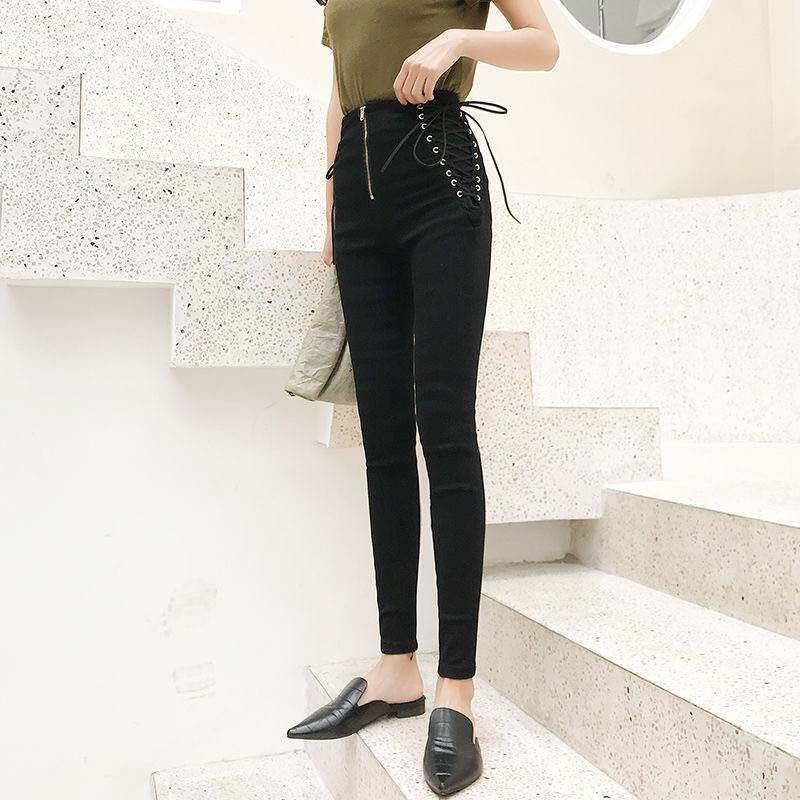 Джинсы женские джинсовые штаны кружев на боковых женских джинсах плюс s