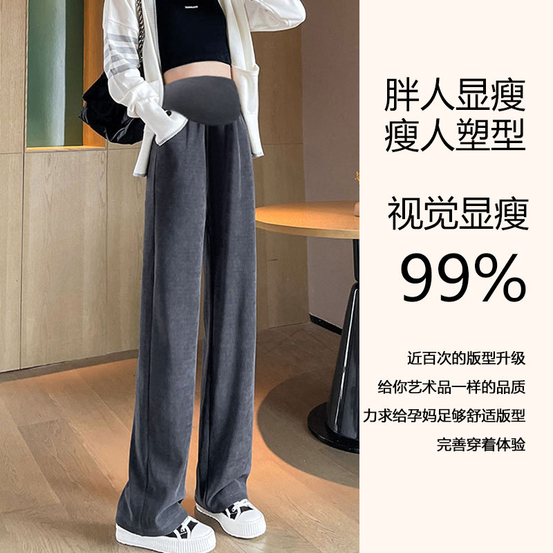 Штаны, базовый осенний пуховик с поддержкой живота, осенние, большой размер, свободный прямой крой