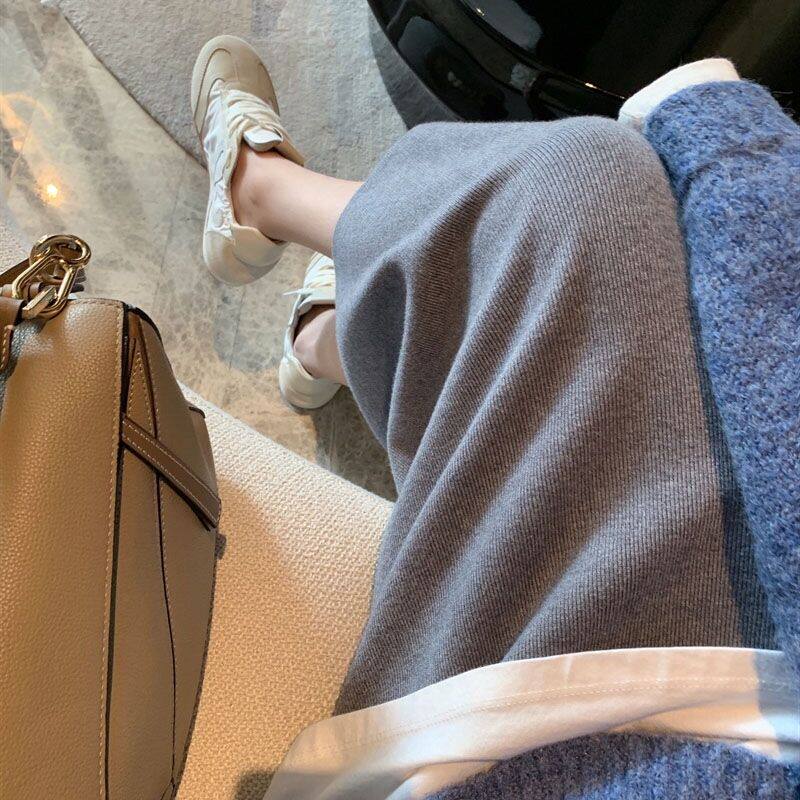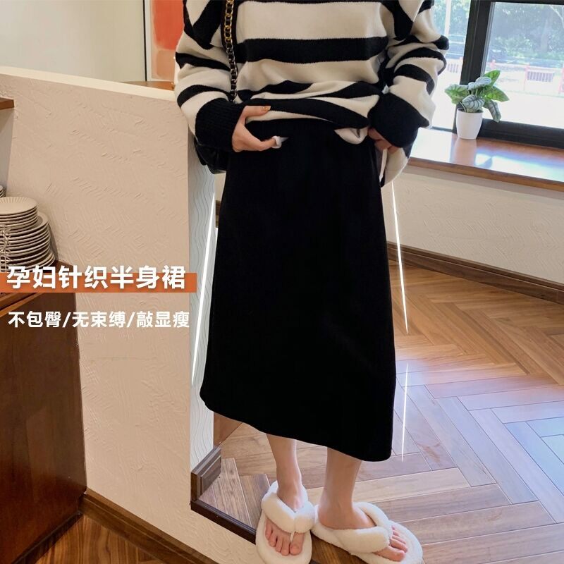 Трикотажная демисезонная длинная юбка для беременных, высокая талия, коллекция 2023, средней длины, с акцентом на бедрах
