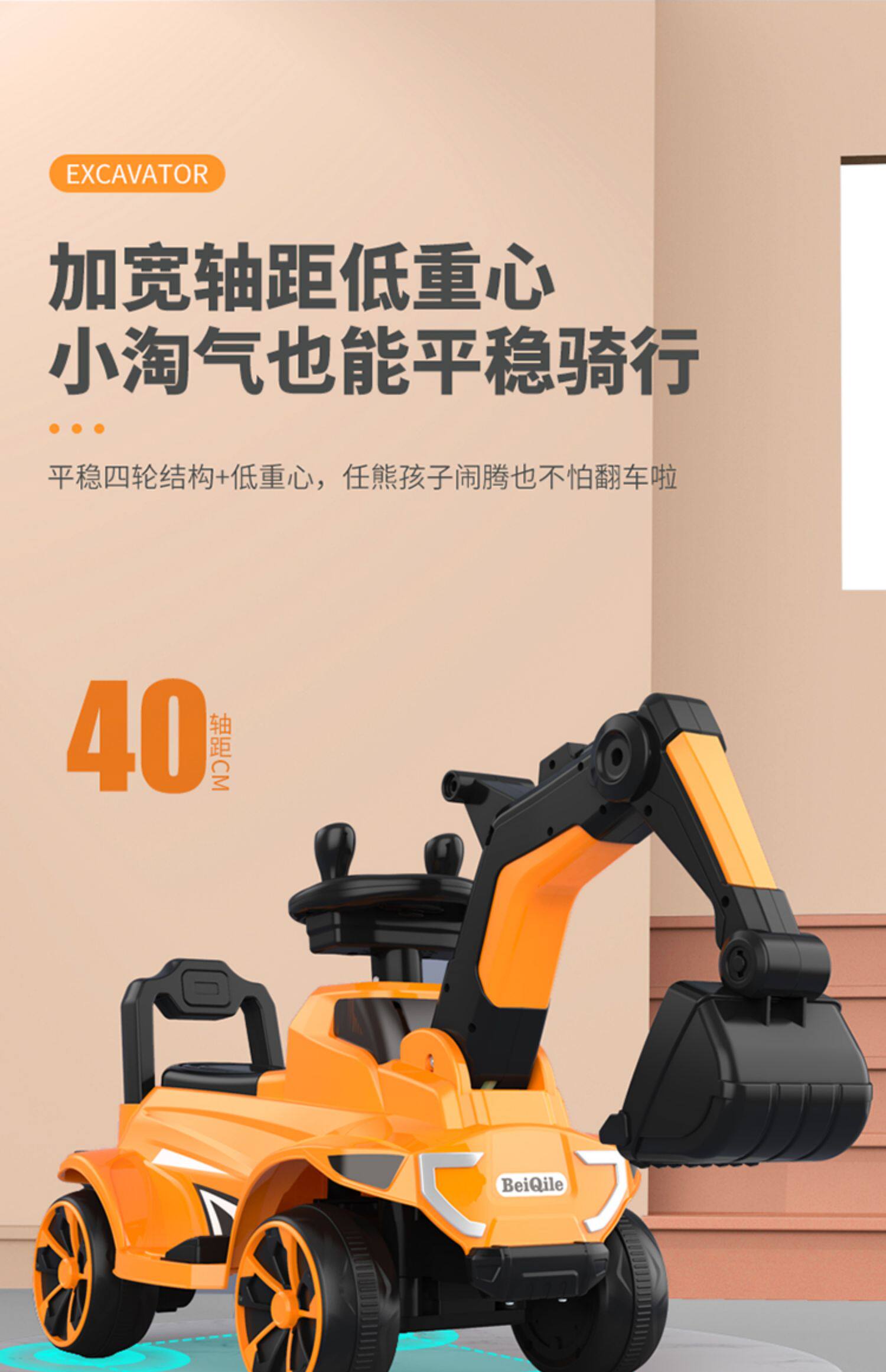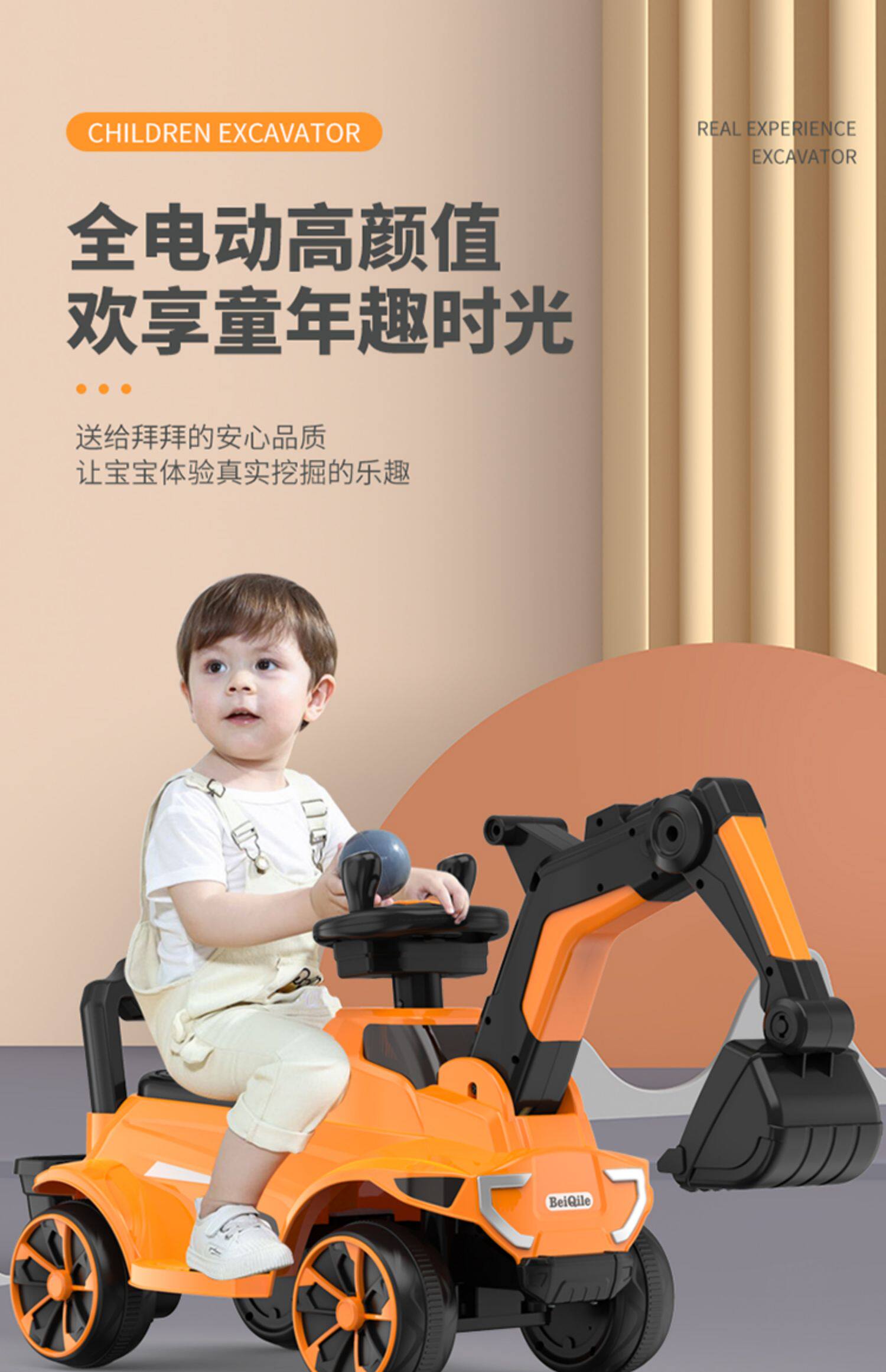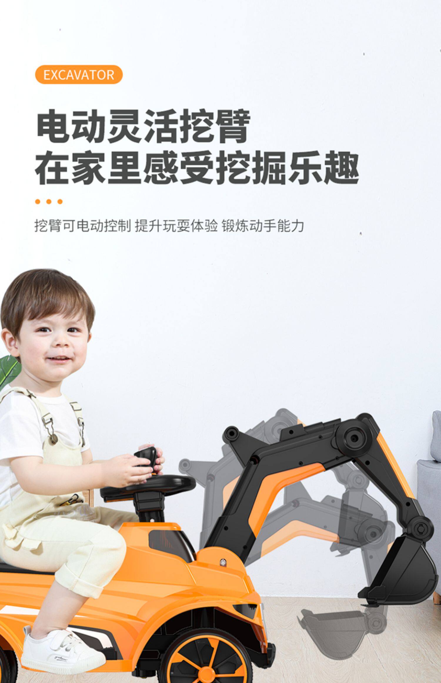 Экскаватор, большая электрическая игрушечная машина с сидением для мальчиков, 3 лет