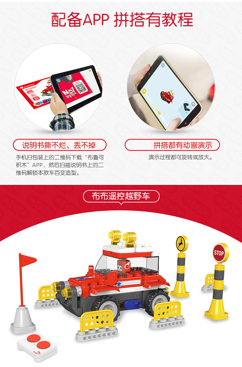 布鲁可 Умный внедорожник, гоночный автомобиль, вариационный конструктор, игрушка для мальчиков, человеческий датчик, дистанционное управление