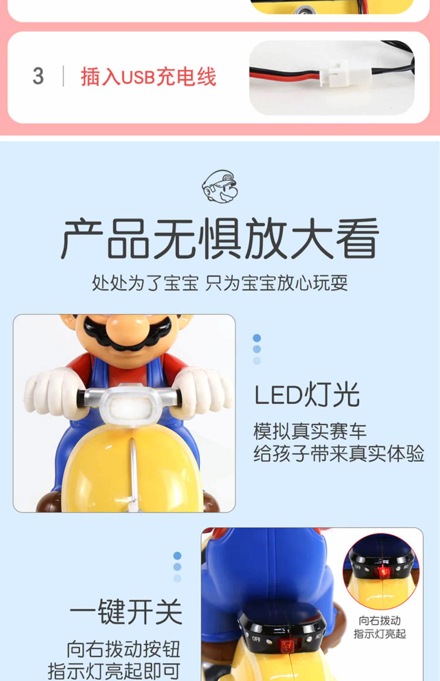 Марио, гоночный автомобиль, игрушка, большая мультяшная электрическая игрушечная машина, картинг для мальчиков, дистанционное управление