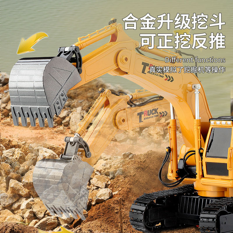 Металлический экскаватор для мальчиков, реалистичная игрушечная машина, электрический транспорт, дистанционное управление