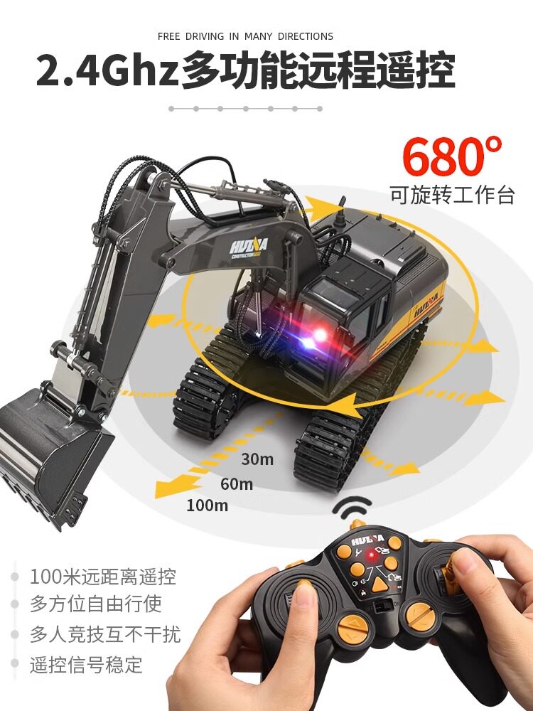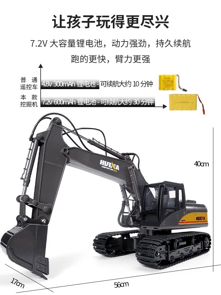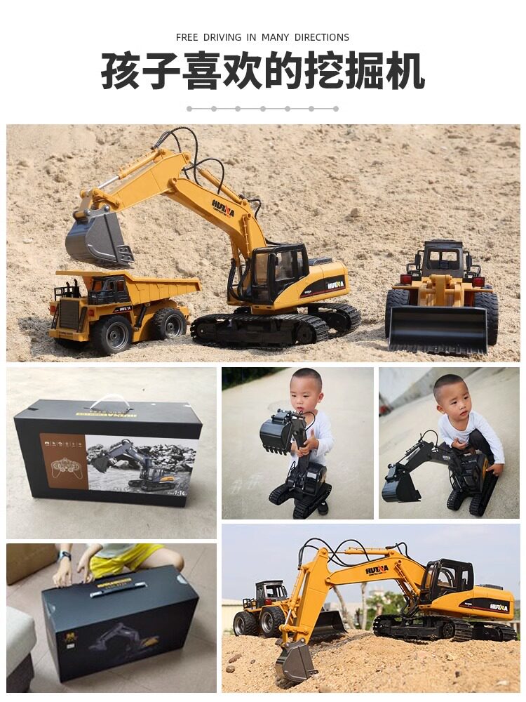 Большой металлический экскаватор, электрическая игрушечная машина для мальчиков, дистанционное управление