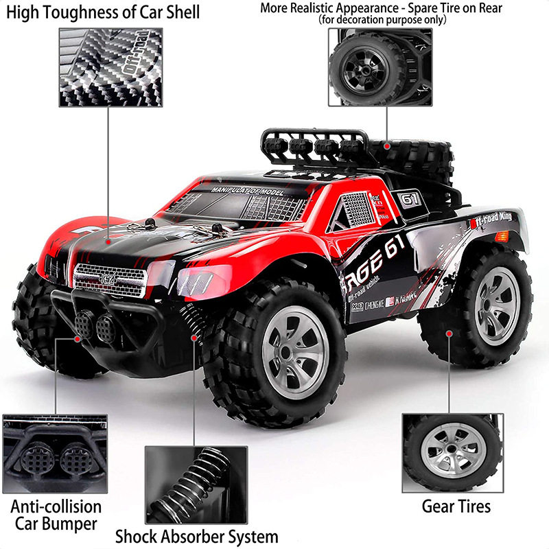 Преимущества нового продукта: Новый дизайн супер крутого пульта дистанционного управления; обновленный 260 мощный мотор с большей мощностью; большие шины с более сильным сцеплением и более крутым внешним видом; Модель пикапа. На крыше есть запаска и внешний вид выглядит более реалистично.