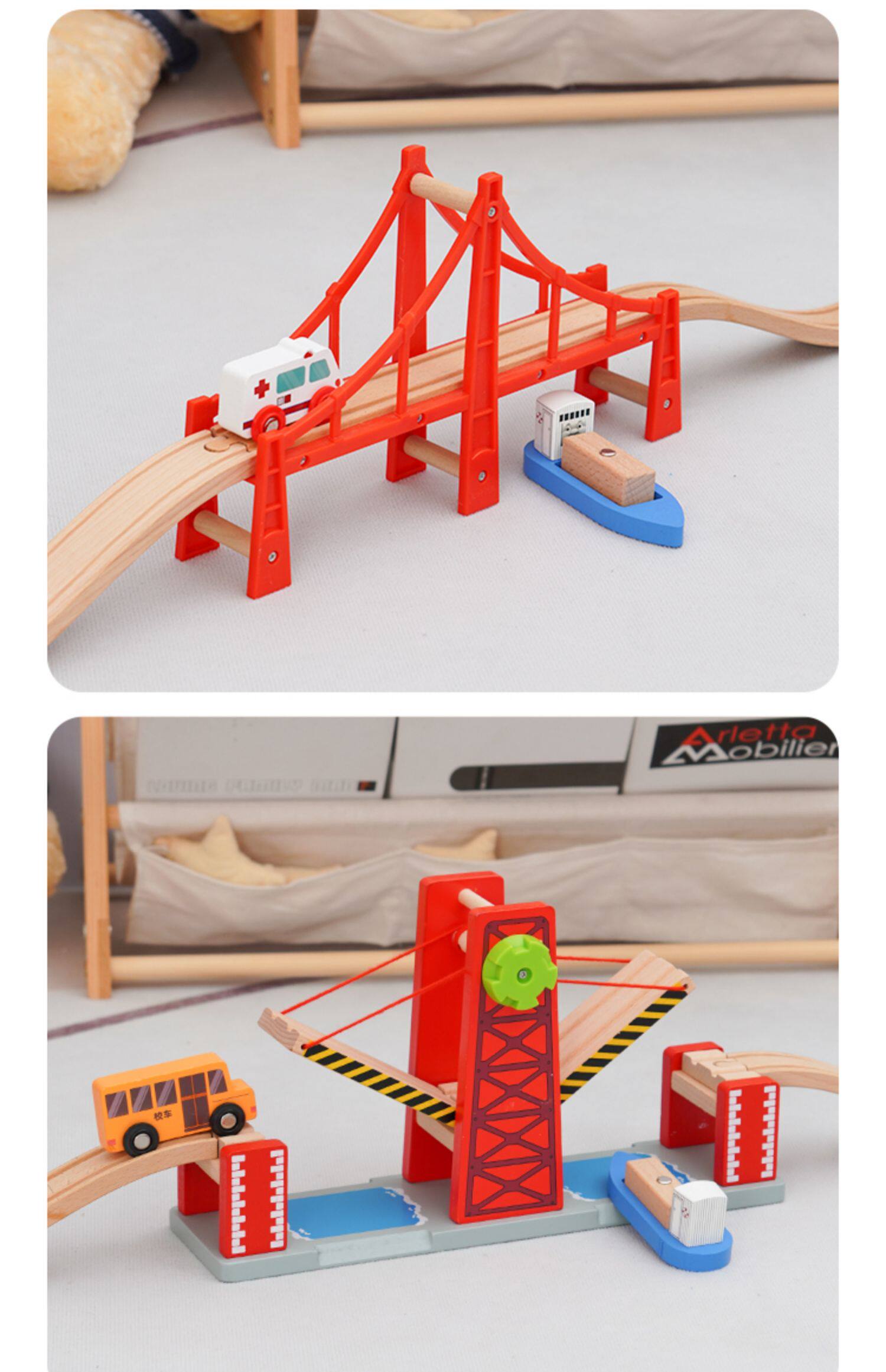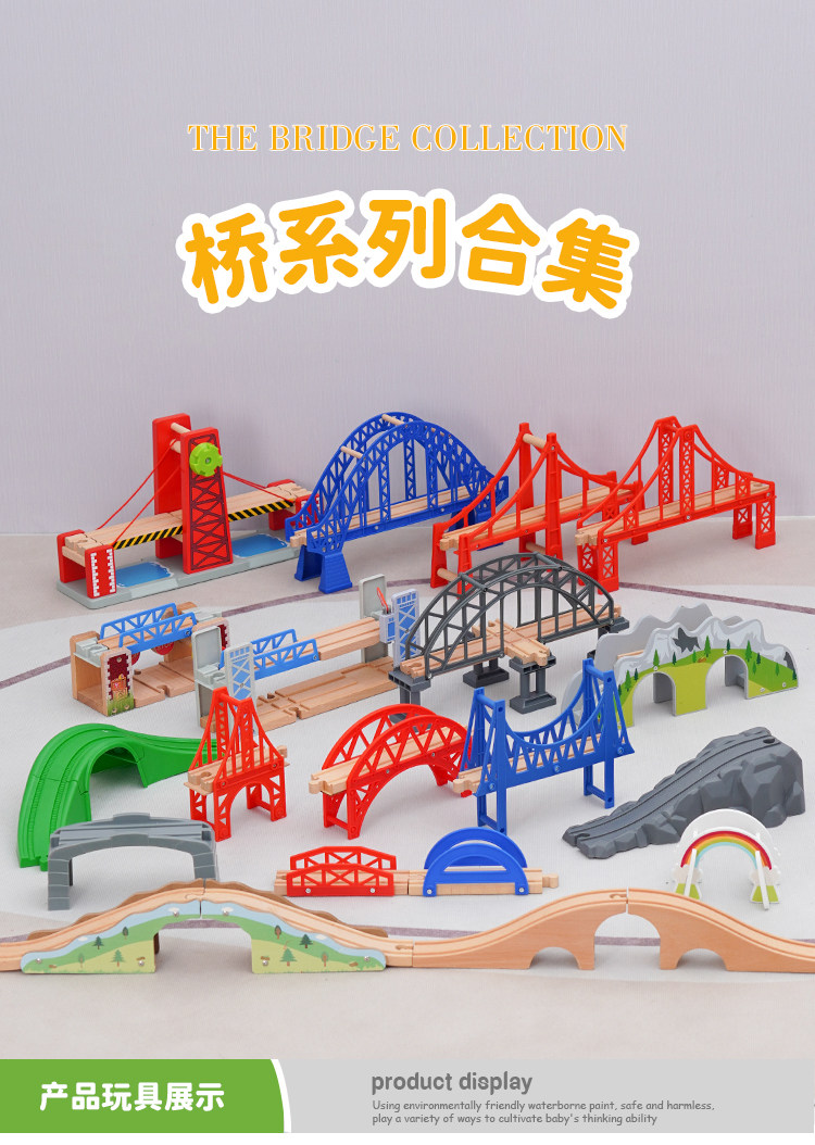 Детский деревянный трасса поезда на дорожку мостового моста расширение аксессуаров, совместимое с Leku Edwone Biro Mitu