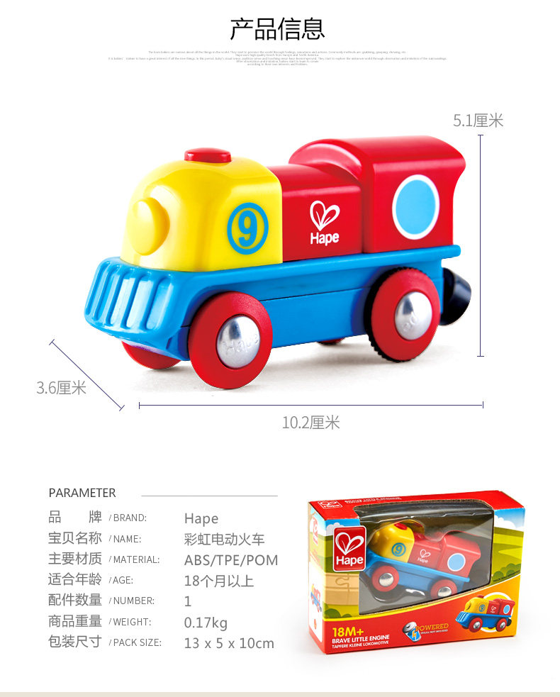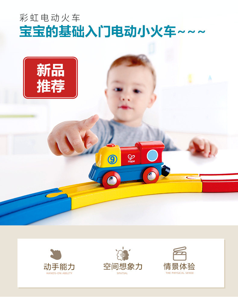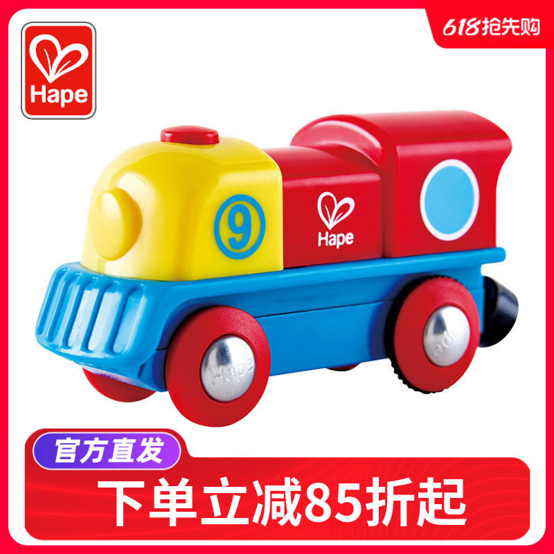 Hape Радужный электрический поезд для мальчиков и девочек, интеллектуальная игрушка, универсальный транспорт для раннего возраста с рельсами