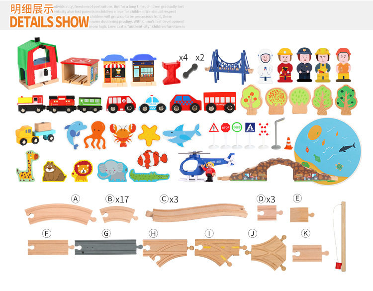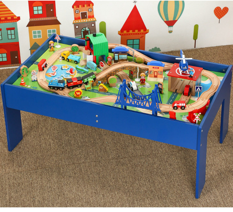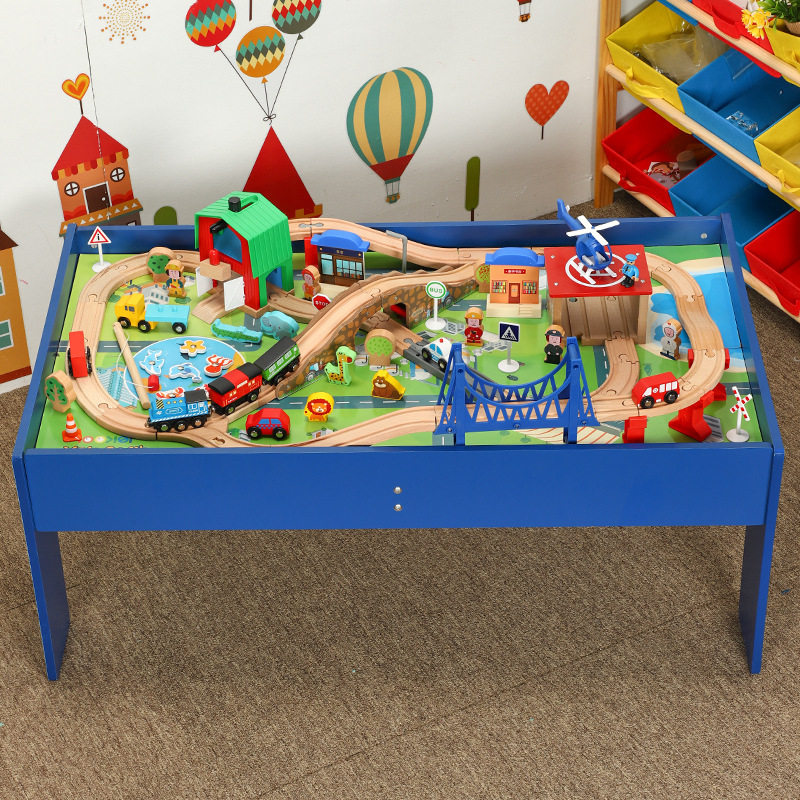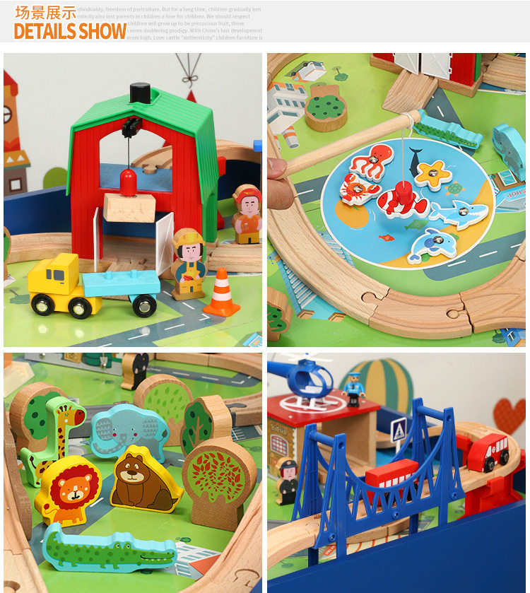 Деревянный электрический универсальный поезд с рельсами, игрушка для детского сада, конструктор