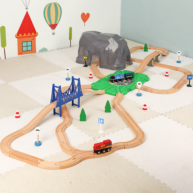 Детский поезд с рельсами, комплект, конструктор, деревянная игрушка, модель автомобиля для мальчиков и девочек