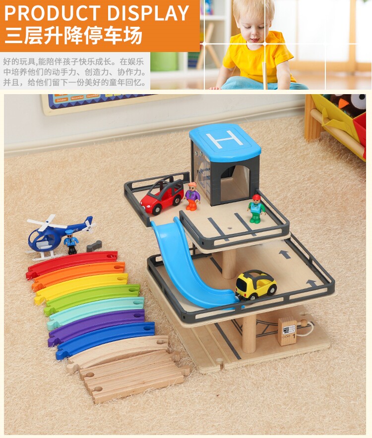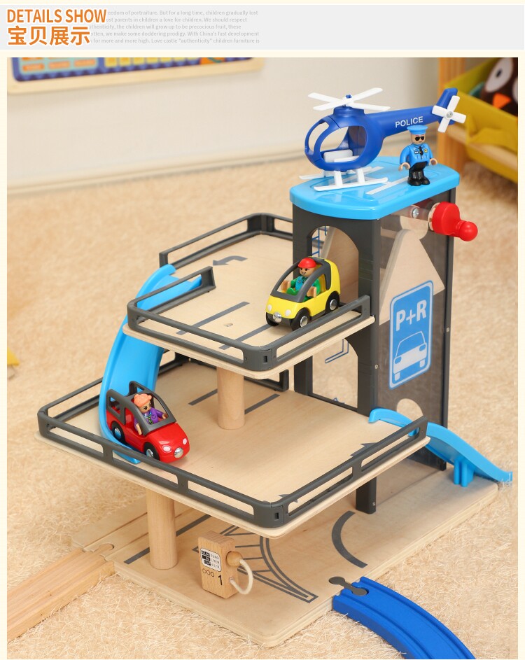 Детский деревянный синий лифт, парковка, комплект, конструктор, метро, игрушечная машина, подарок на день рождения