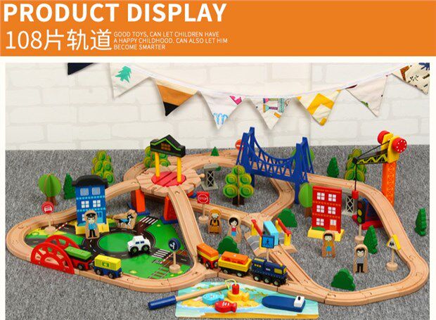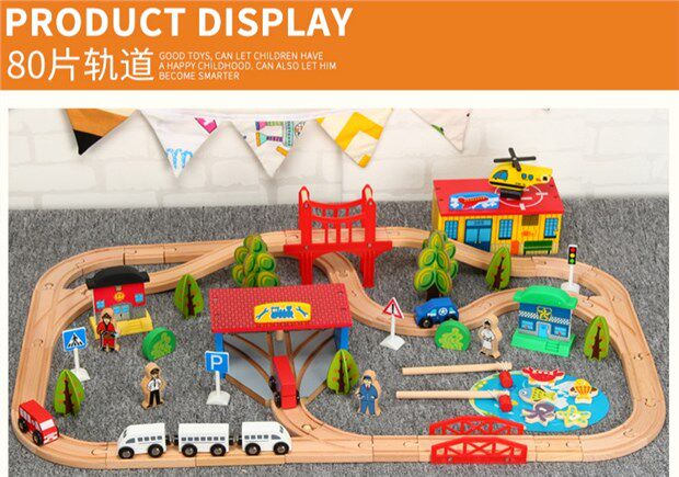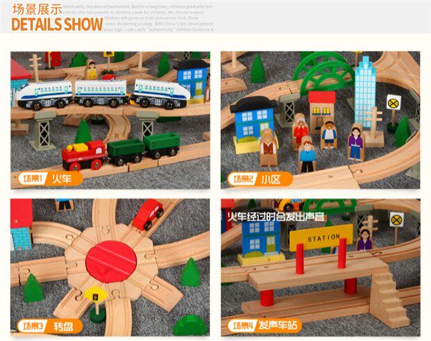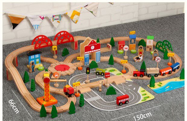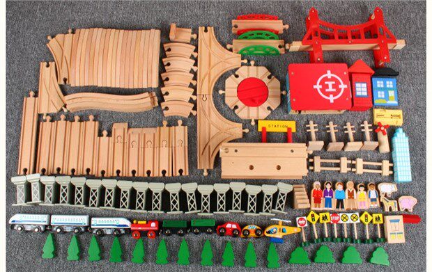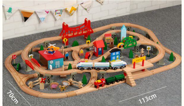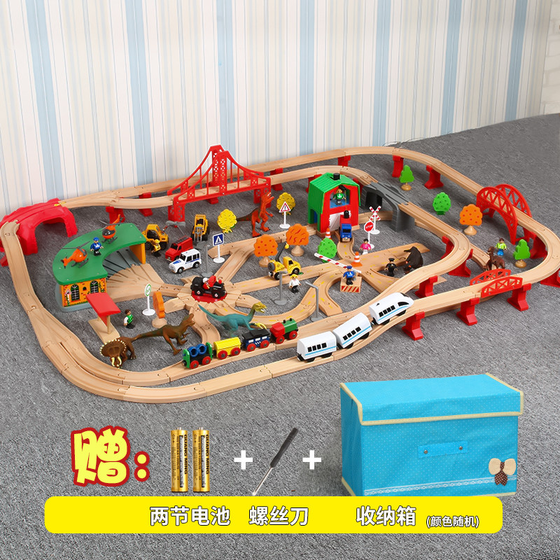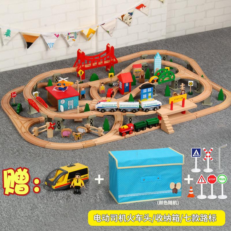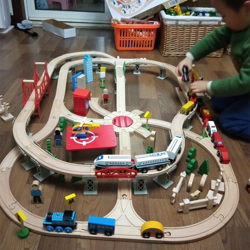 Детский поезд из натурального дерева с рельсами, комплект, электрическая игрушка