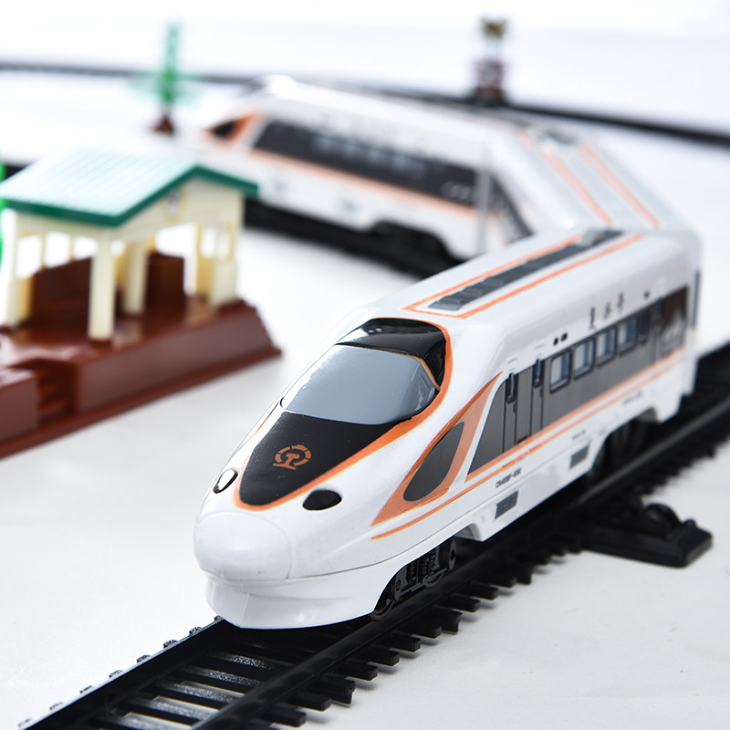 Детская реалистичная электрическая модель автомобиля с рельсами со светомузыкой, поезд, игрушечная машина, комплект