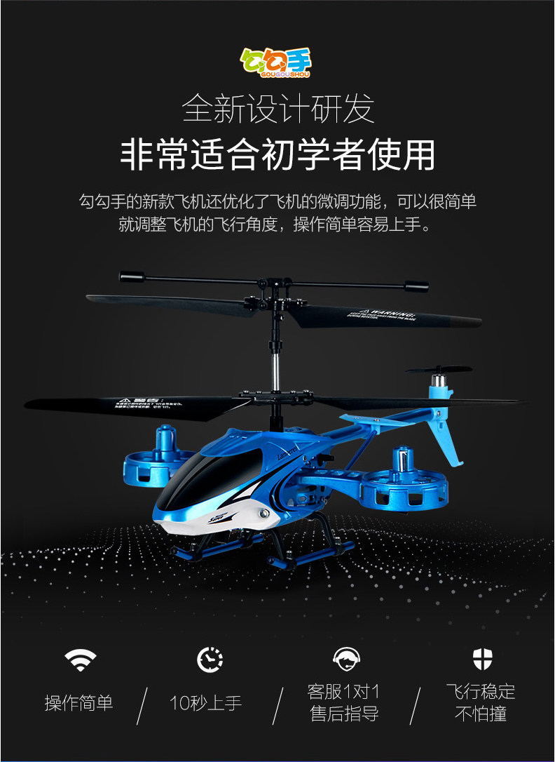 勾勾手 Металлический ударопрочный дрон, маленький вертолет с зарядкой, электрический самолет для мальчиков, игрушка