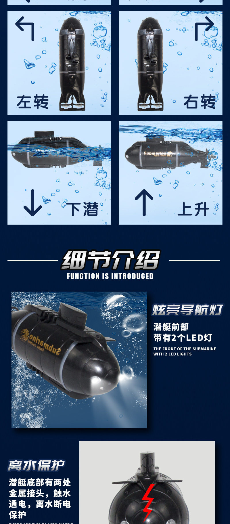 Напоминание: подводная лодка должна подвергаться воздействию автоматического индукционного переключателя воды на подводной лодке с низко-проходом, необходимо разгрузить черную перегородку, чтобы связаться с индуктивным переключателем, когда заряжает подводную лодку, подводная ламп будет ярким в противном случае, в противном случае, в противном случае, в противном случае, в противном случае, в противном случае, в противном случае, в противном случае, в противном случае, в противном случае, в противном случае,, иначе,, в противном случае, в противном случае, в противном случае,, иначе Это может нанести постоянный ущерб аккумулятору, спасибо за ваш визит и поддержку!
