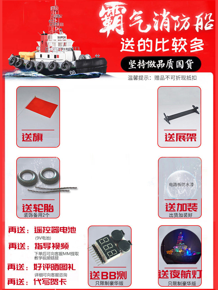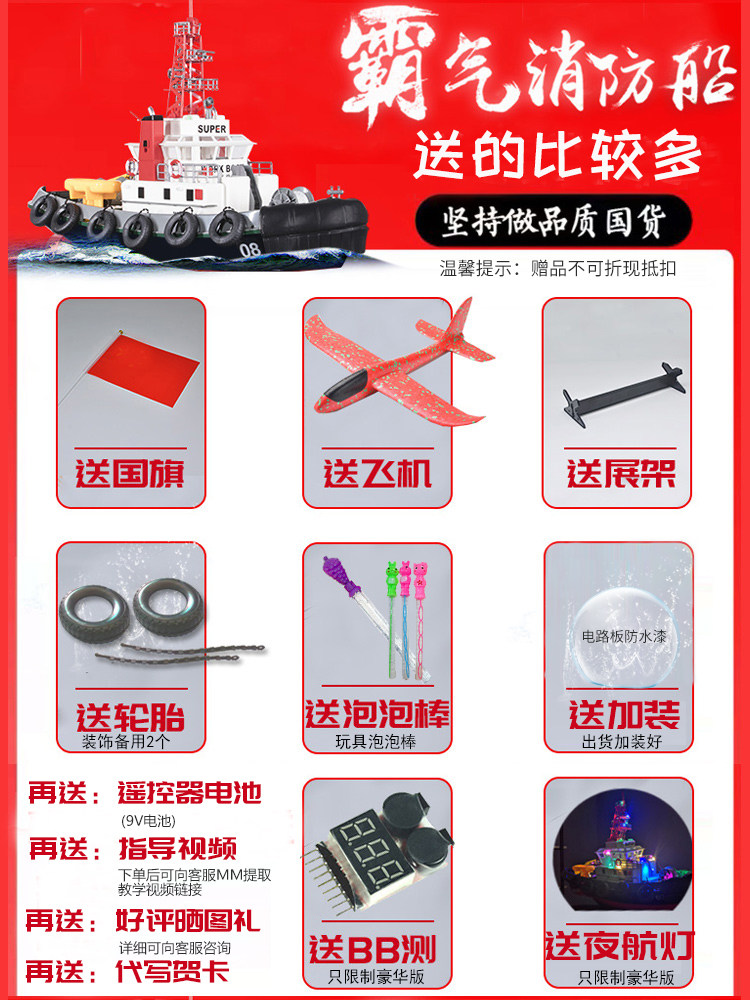 Этот катер спроектирован как катер для разбрызгивания пожарной воды. Он может распылять воду после вождения в воде, чтобы развивать у детей знания в области пожаротушения.Знания о мощности океанских лодок, принципах дистанционного управления лодками, а также научные и технологические знания.Дорогие друзья, пожалуйста, внимательно направляйте и развивайте будущих звезд Китая после покупки и усердно учитесь.