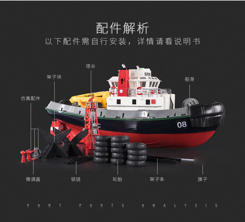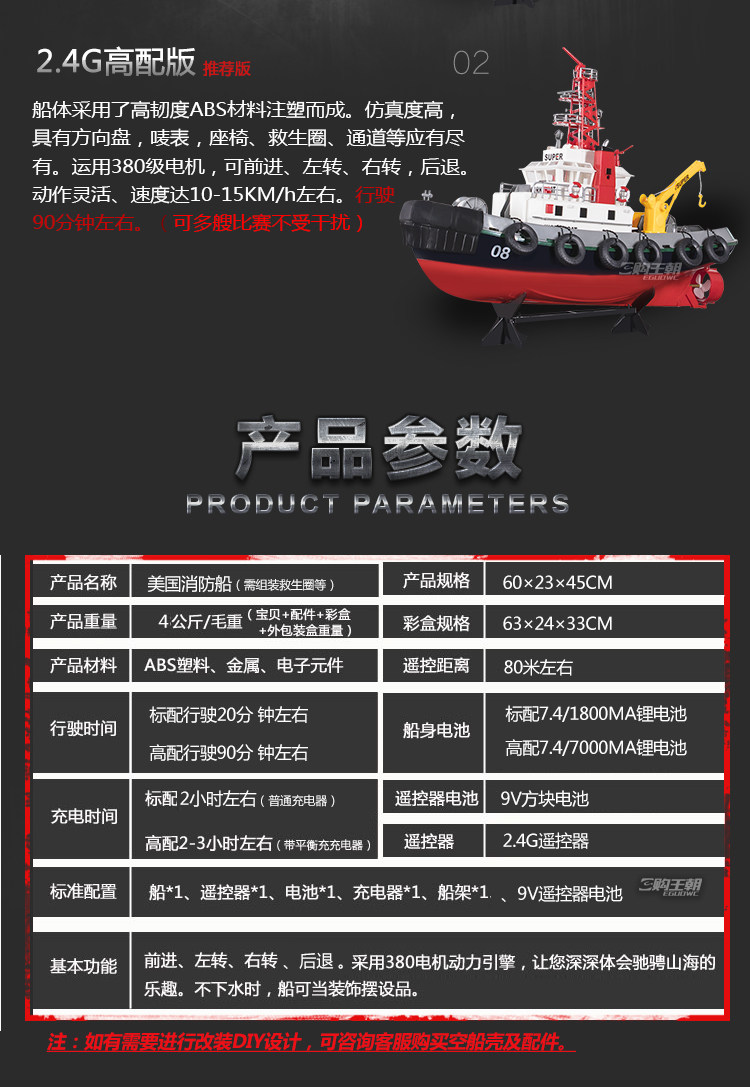 3, имитация пожарного катера высока,Рули, этикетки, сиденья, спасательные круги, проходы и т. д. имеются в наличии.этоДизайн красивый, элегантный и элегантный, а батарею можно вращать, чтобы вы могли играть дольше.