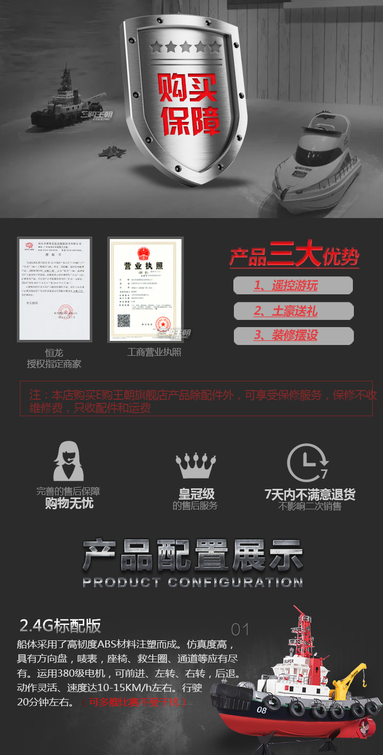 Ответ: Поскольку цветы воды большие, когда запускается корабль дистанционного управления, во время запуска, небольшая вода неизбежно будет капать из положения крышки лодки, и он попадет немного больше воды.Даже если настоящая яхта более или менее попадает в какую -то воду, настоящая яхта обычно оборудована насосом и регулярным накачкой.Этот дистанционный корабль принимает водонепроницаемый дизайн.