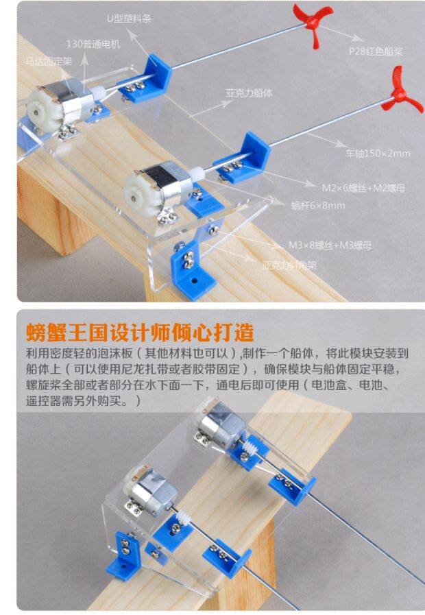 Игрушка, лодка, мотор, трансмиссионный вал, DIY, фиксаторы в комплекте