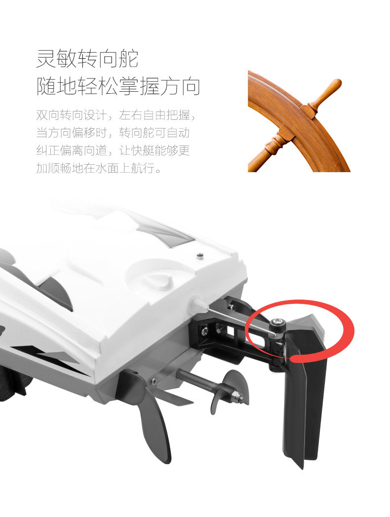 【Полно -пропорциональное рулевое управление】Диапазон рулевого управления модели корабля такой же, как и рулевое колесо.