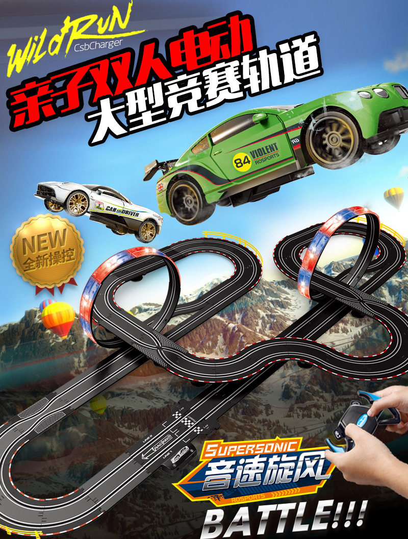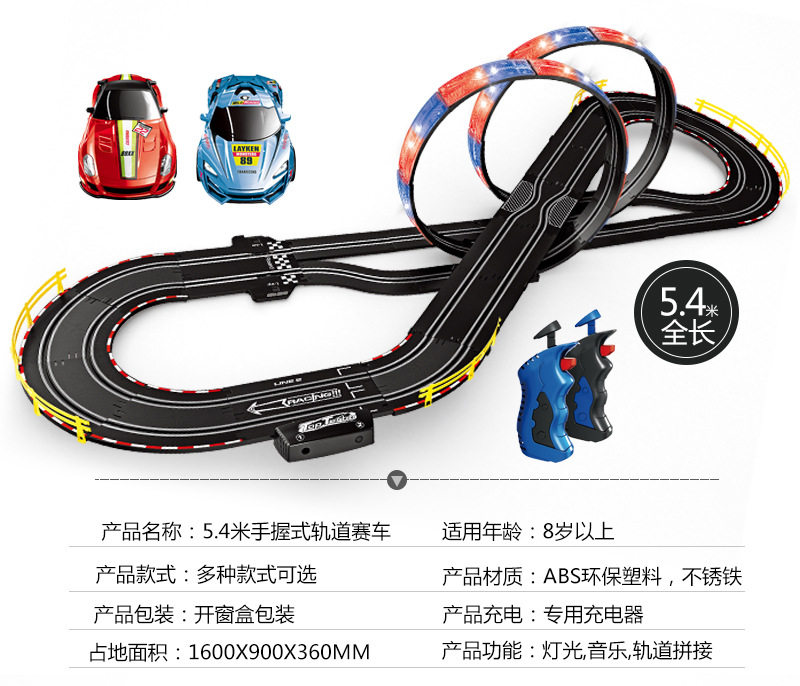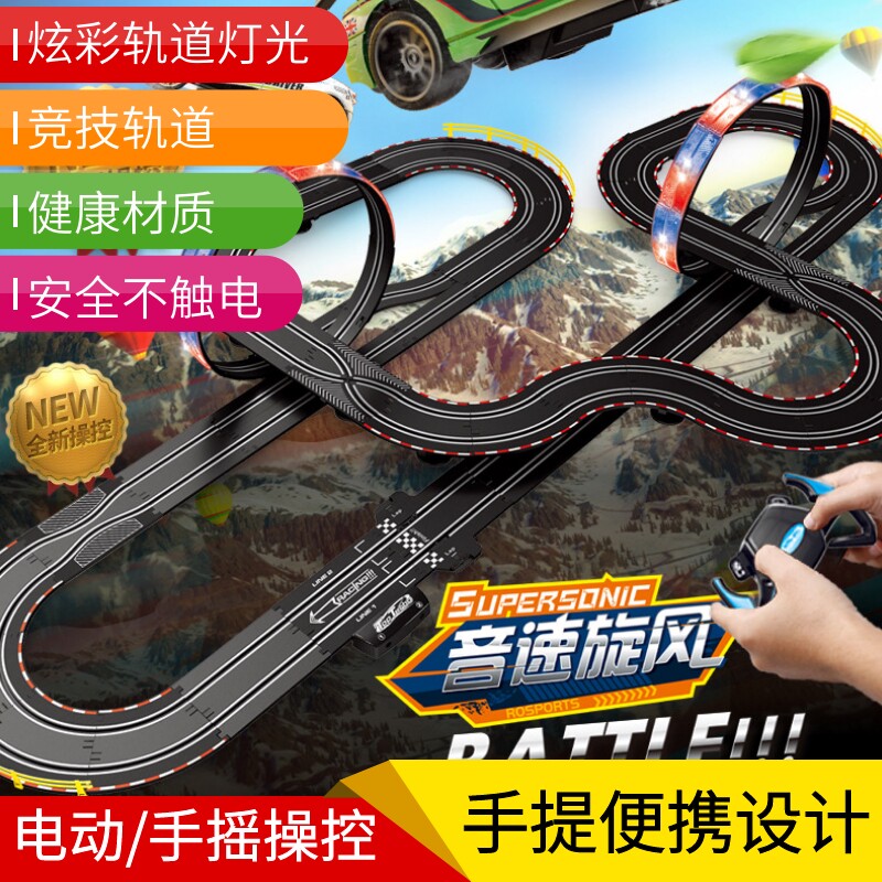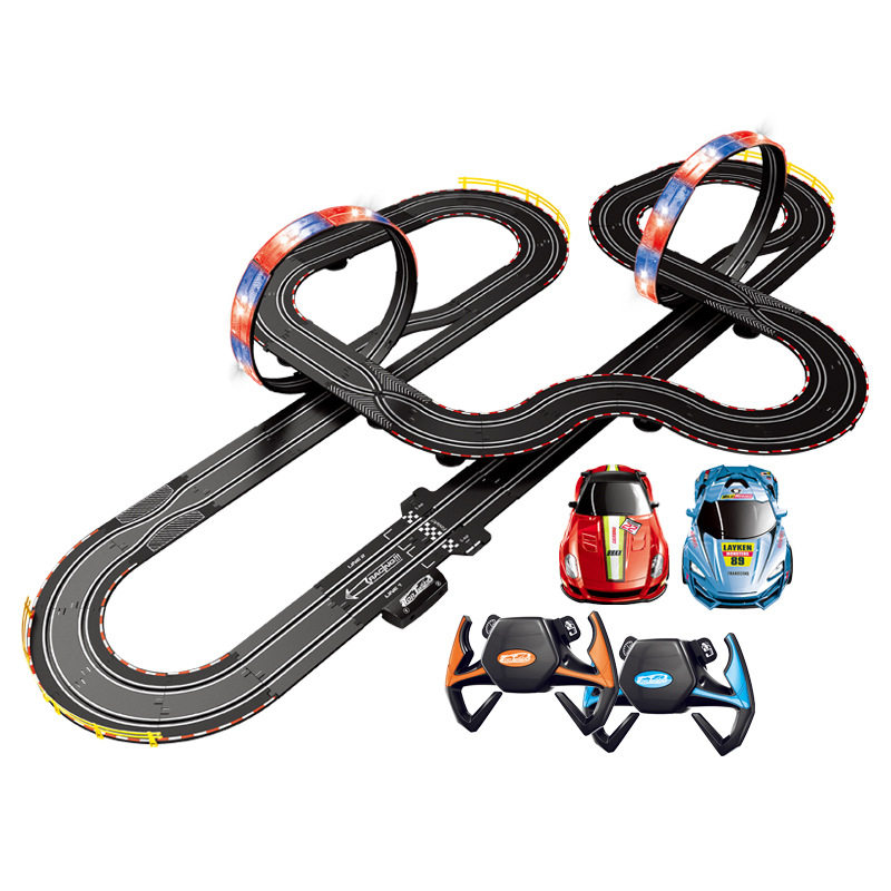 Электрический гоночный автомобиль с рельсами, интеллектуальная игрушка для мальчиков для двоих, транспорт, дистанционное управление