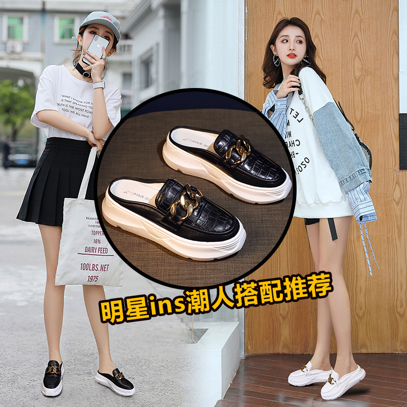 Модный б вход!Fit, маленькие половины тапочки, женщины носят летнюю дикую головоломку, сандалии Baotou, толстые подошвы маленьких белых туфлей