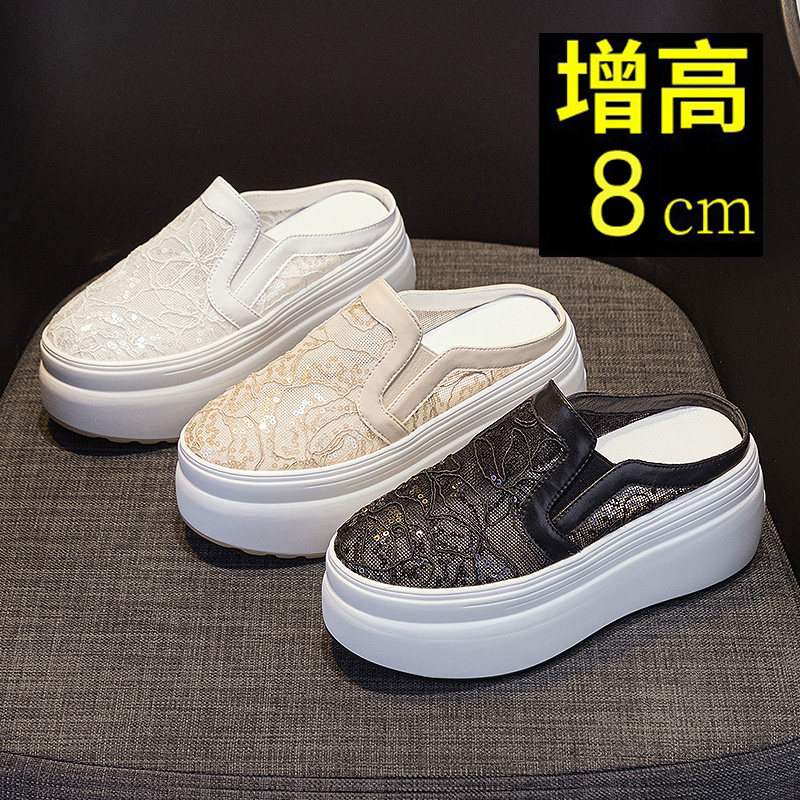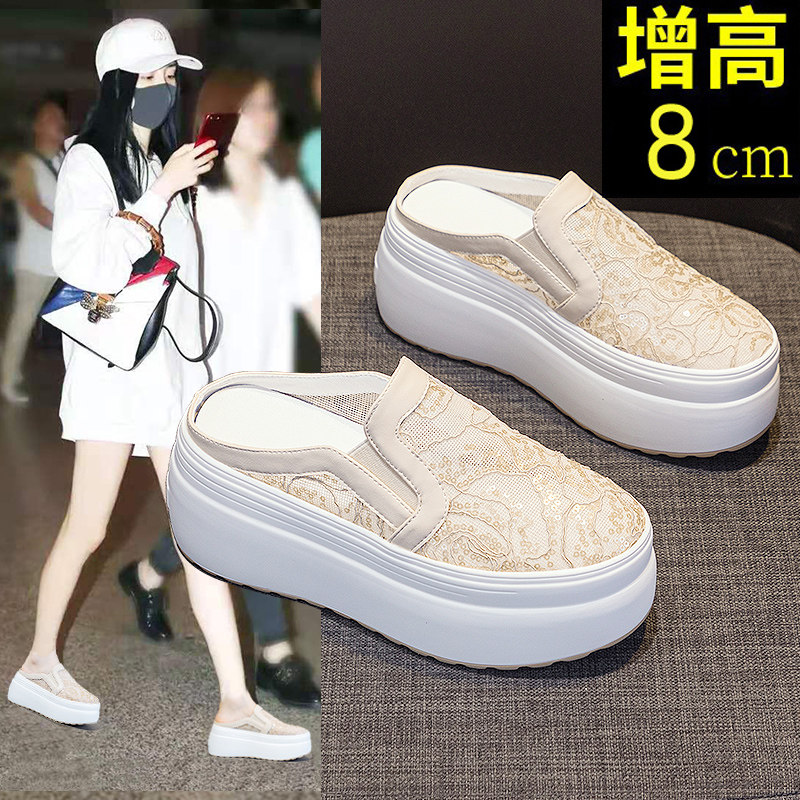 Популярный стиль этого года, универсальный и красивый ~ Женские весенние полудлинные шлепанцы на толстой подошве с носками и носками интернет-знаменитостей.