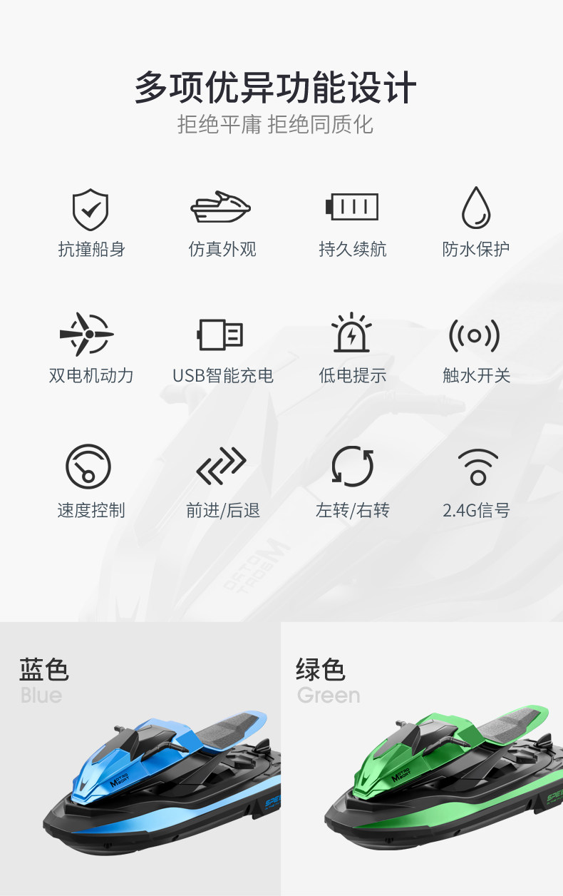 Высокоскоростной водный катер, электрический мотоцикл, водонепроницаемая беспроводная модель корабля, электрическая игрушка для мальчиков