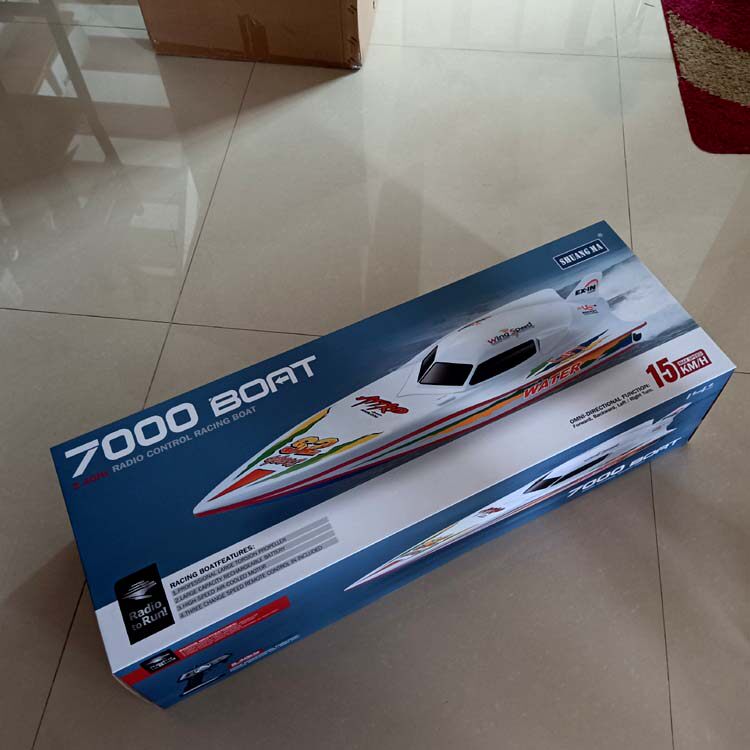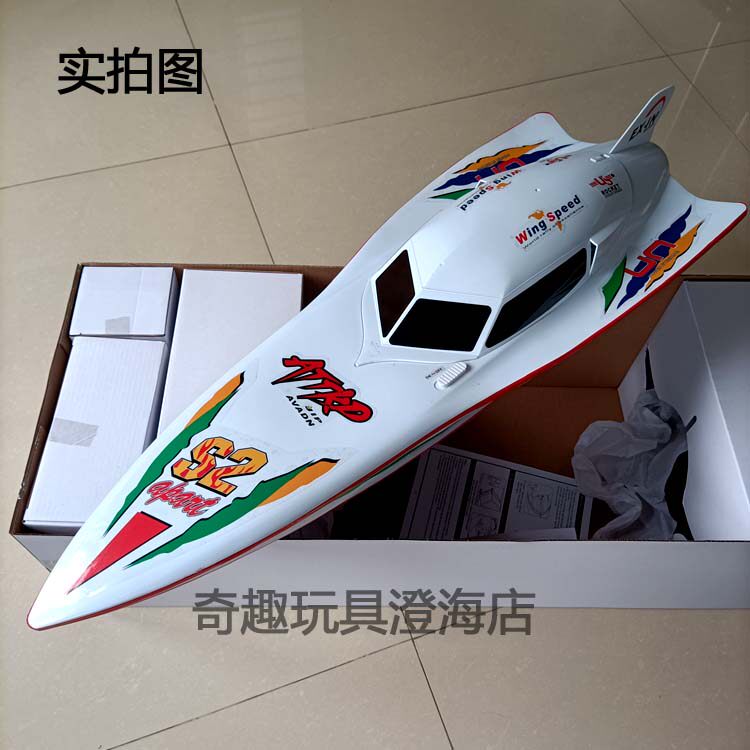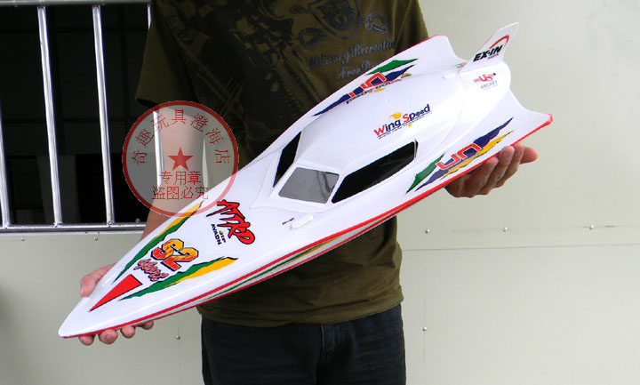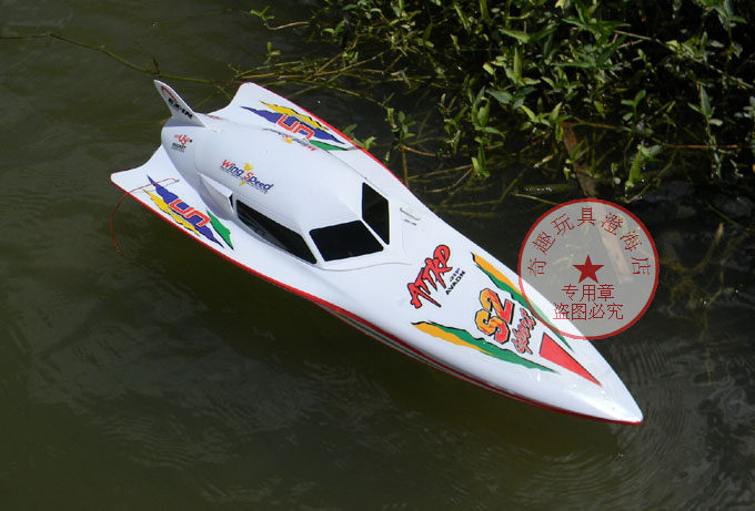 Скорость пятна составляет 40 километров в час, гоняя на двойном ход -хорсе 7000 дистанционного управления катером с дистанционным дистанционным управлением.