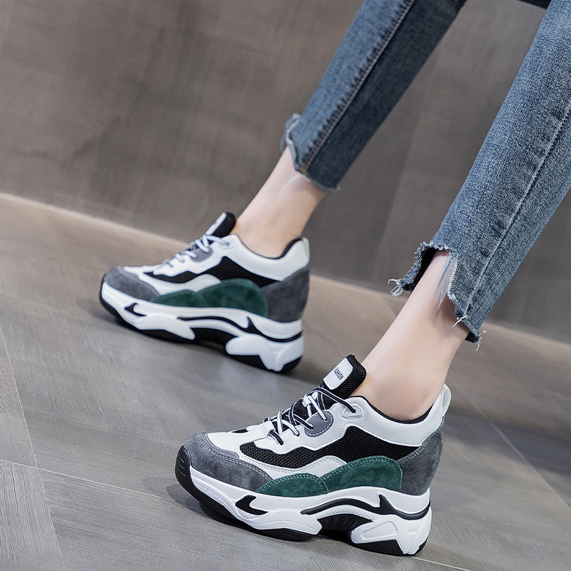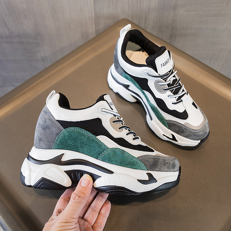 Невидимый эффект ~ 7 см, внутренняя обувь для папы, увеличивающая рост, для женщин, весна 2025, новая корейская версия, спортивные белые дышащие туфли на толстой подошве