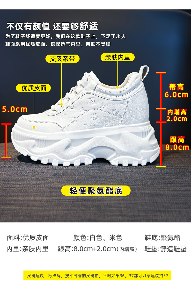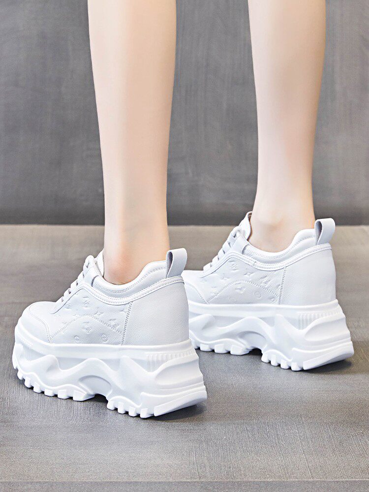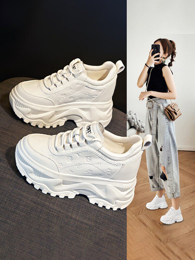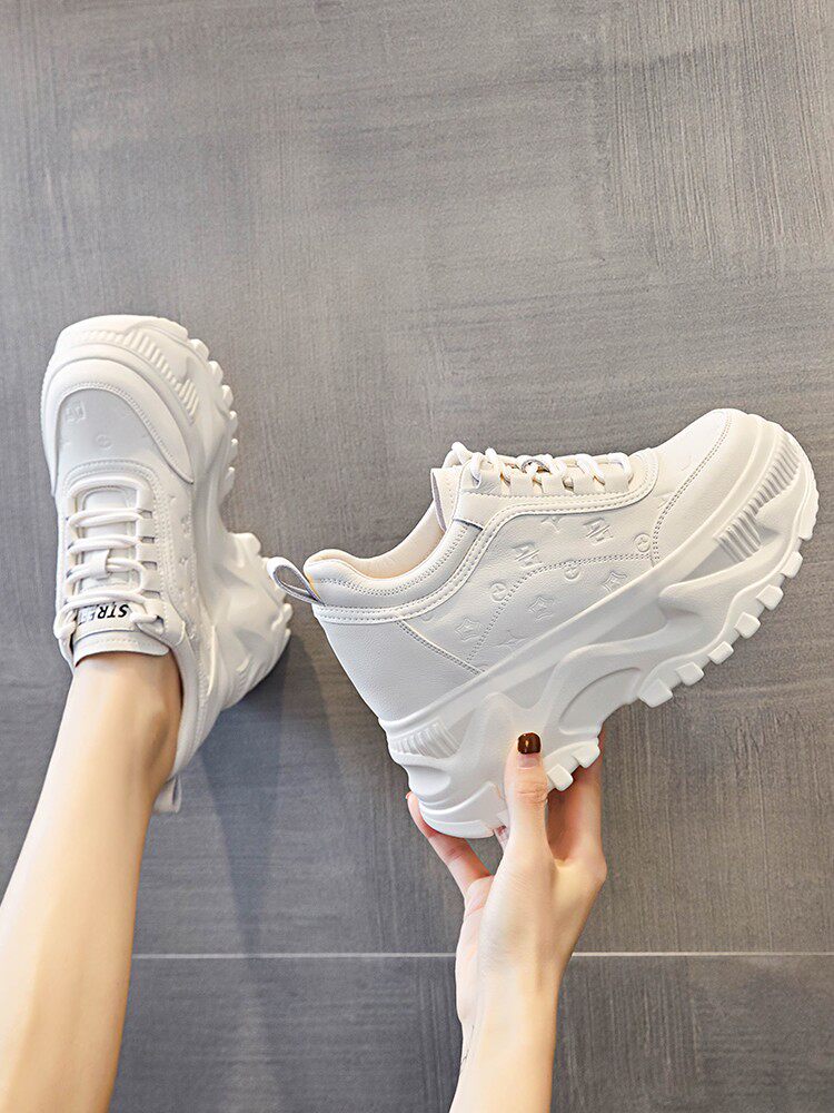 Тайно расти выше ~ Папина обувь, новинка весны 2025 года, туфли на платформе, толстая подошва с увеличением роста на 10 см, спортивные белые туфли