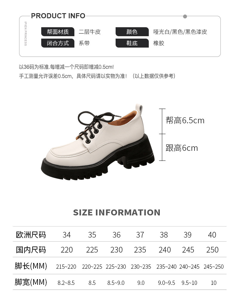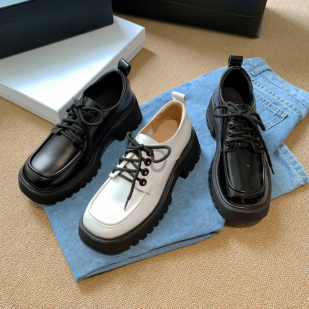 Увеличение роста и мода ~ Маленькие кожаные туфли на толстой подошве для женщин, весенний сезон 2025, новые туфли на толстом каблуке в студенческом стиле на шнуровке для похудения