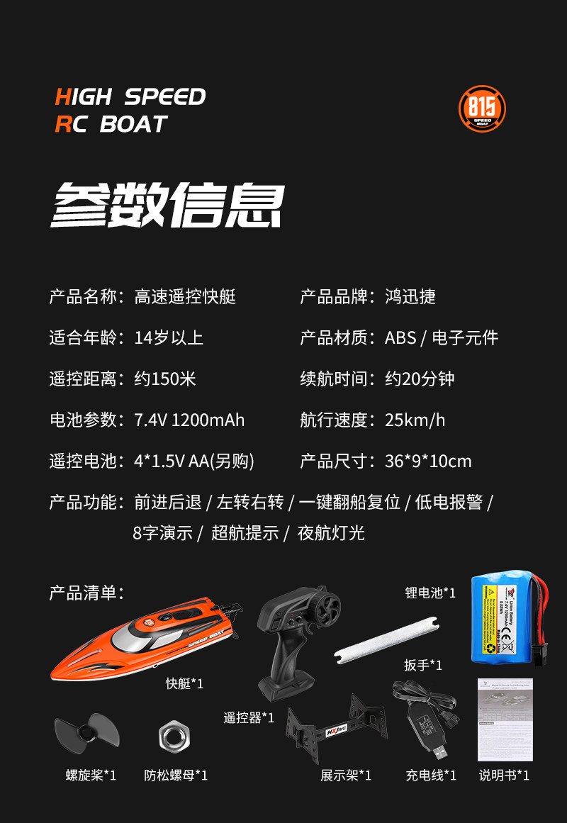 鸿迅捷 Катер, легкая высокоскоростная игрушка с подсветкой, 4G, дистанционное управление
