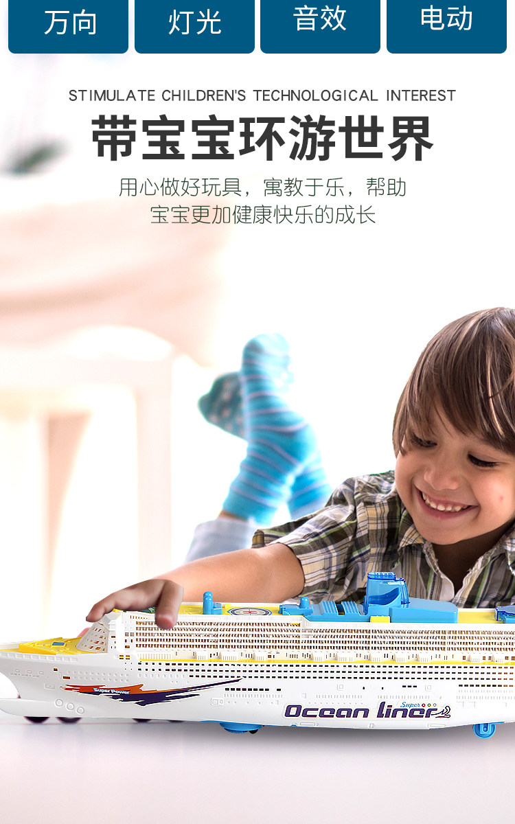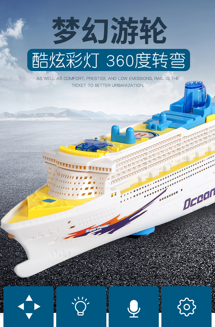 Электрическая автоматическая универсальная большая яхта со светомузыкой, реалистичная модель корабля для мальчиков, игрушка