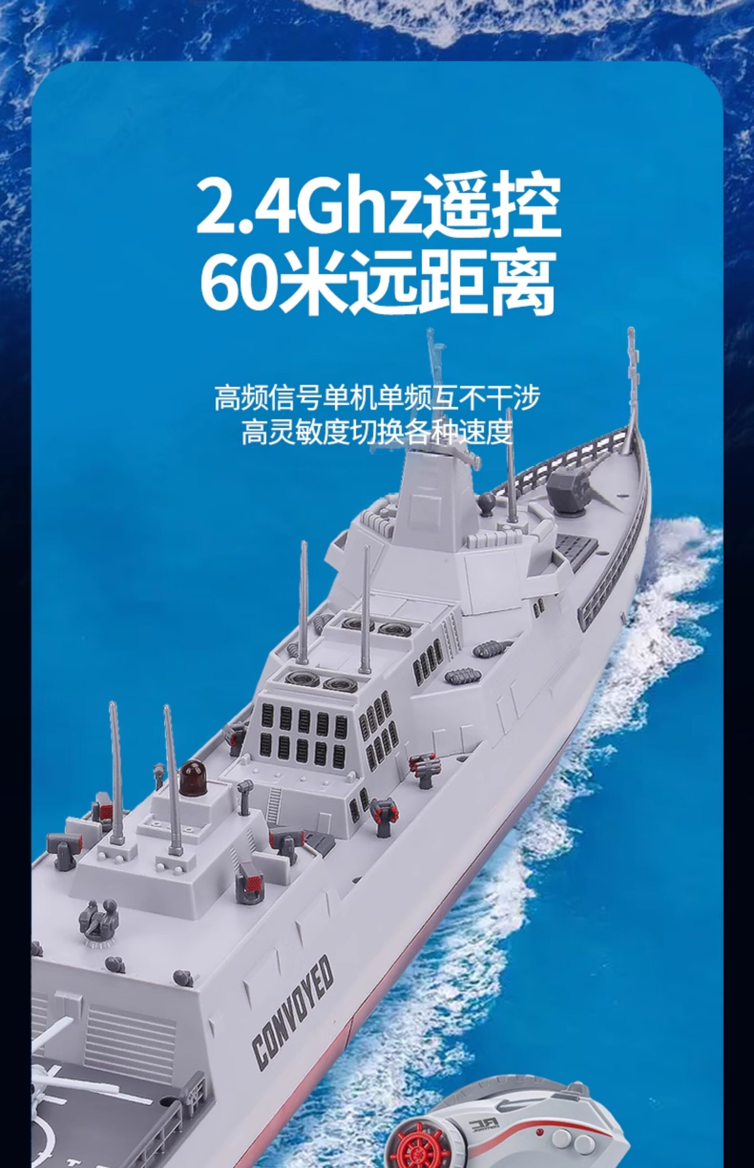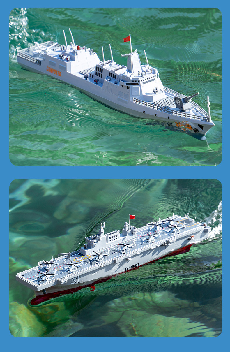 Водометный эсминец с дистанционным управлением, новая модель 2025 года может быть запущена и открыта 𫔭пушка для военной войны 𢧐модель корабля для мальчика, электрическая игрушечная лодка