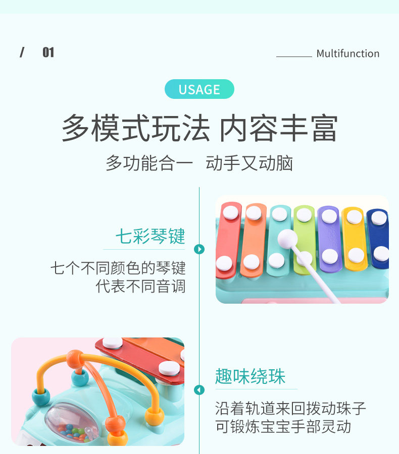 Металлофон, ударные инструменты, музыкальная интеллектуальная игрушка, 2 в 1, 8 мес.