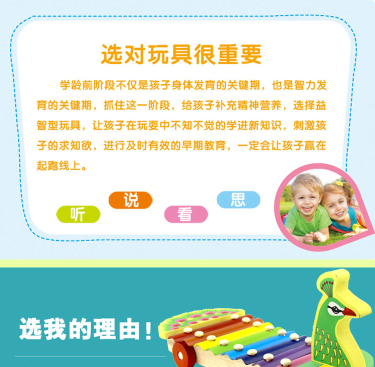 Деревянный металлофон, интеллектуальная игрушка, музыкальные музыкальные инструменты, раннее развитие, обучение, павлин, утка