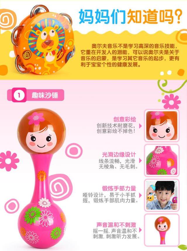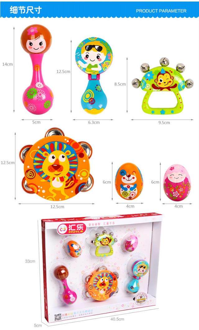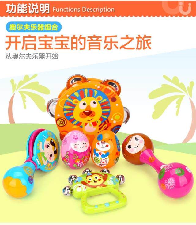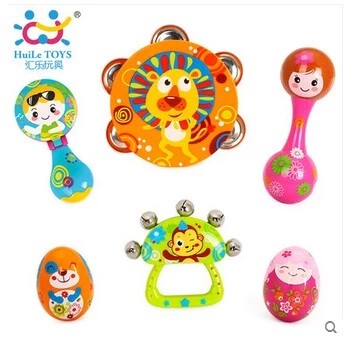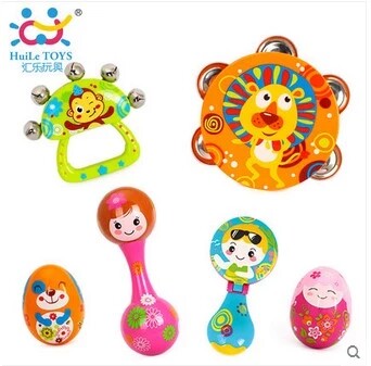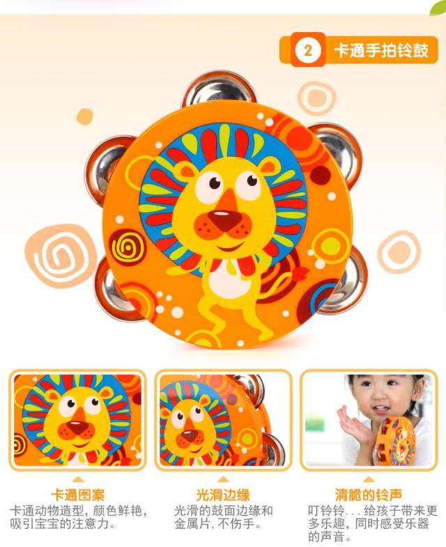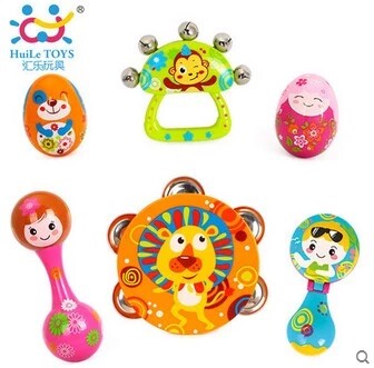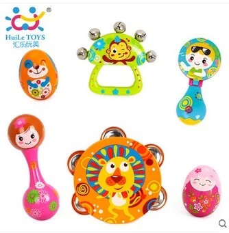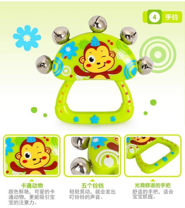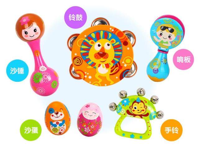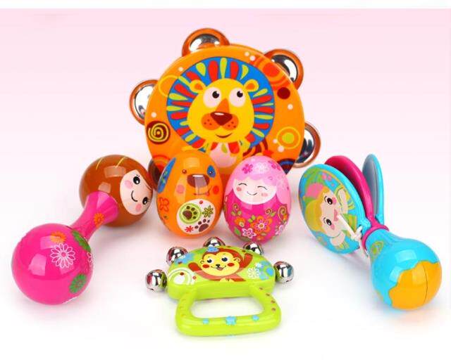 Окрашенные музыкальные инструменты, качалка для новорожденных, погремушка, колокольчик, бубен, маракас
