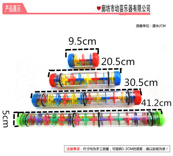 Фестиваль звука дождя:10 см в диаметре на раздел 5 см, 1 дождливый звук длиной 10 см. 2 секции дождливых звуков имеют длину 20 см, 3 капли дождя имеют длину 30 см, а 4 дождя - 40 см в длину