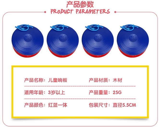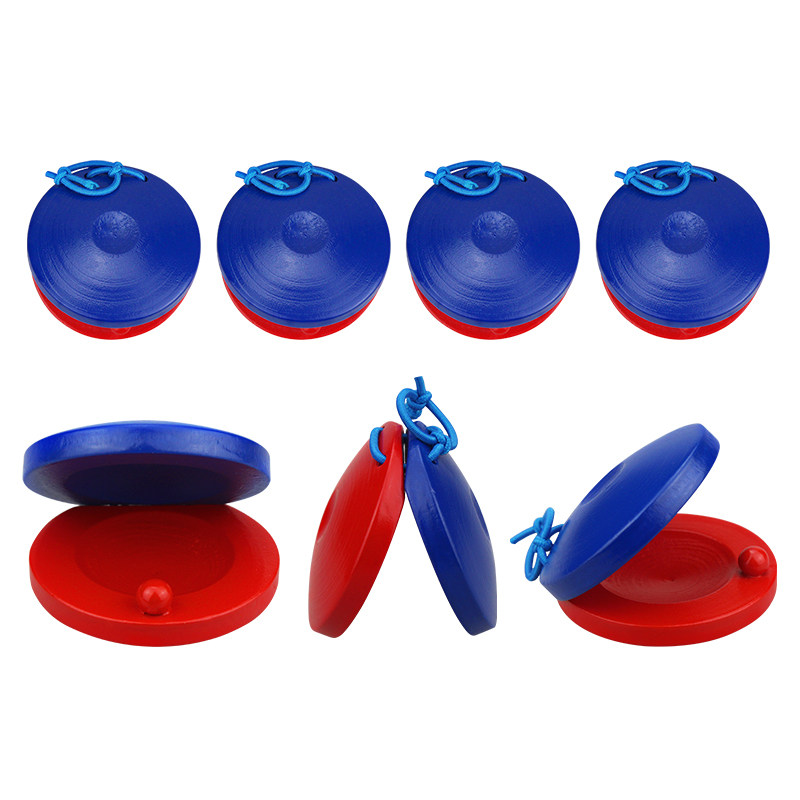 Деревянный красный и голубые кастаснетские музыкальные инструменты для детей