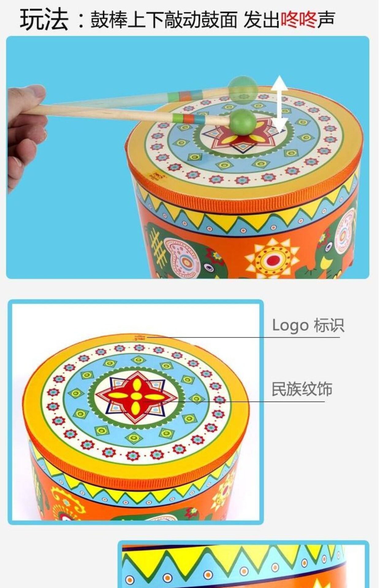 Барабаны, двусторонний барабан, ударные инструменты для младенца, музыкальная игрушка
