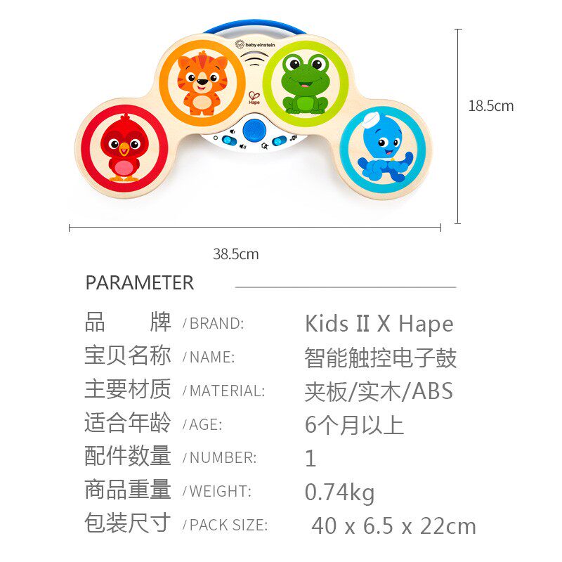 Hape Умные электронные барабаны, барабан, музыкальная игрушка, раннее развитие, 1-3 лет, подарок на день рождения